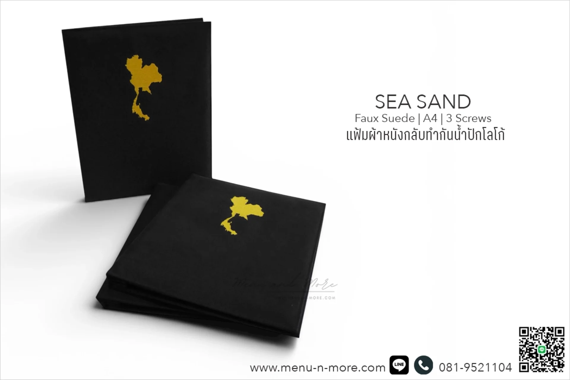 แฟ้มเมนูคอลเลกชันนี้ผสมผสานรูปลักษณ์เหนือกาลเวลาของผ้าหนังกลับเข้ากับเมนูร้านอาหารที่ทำความสะอาดง่ายและทนทาน