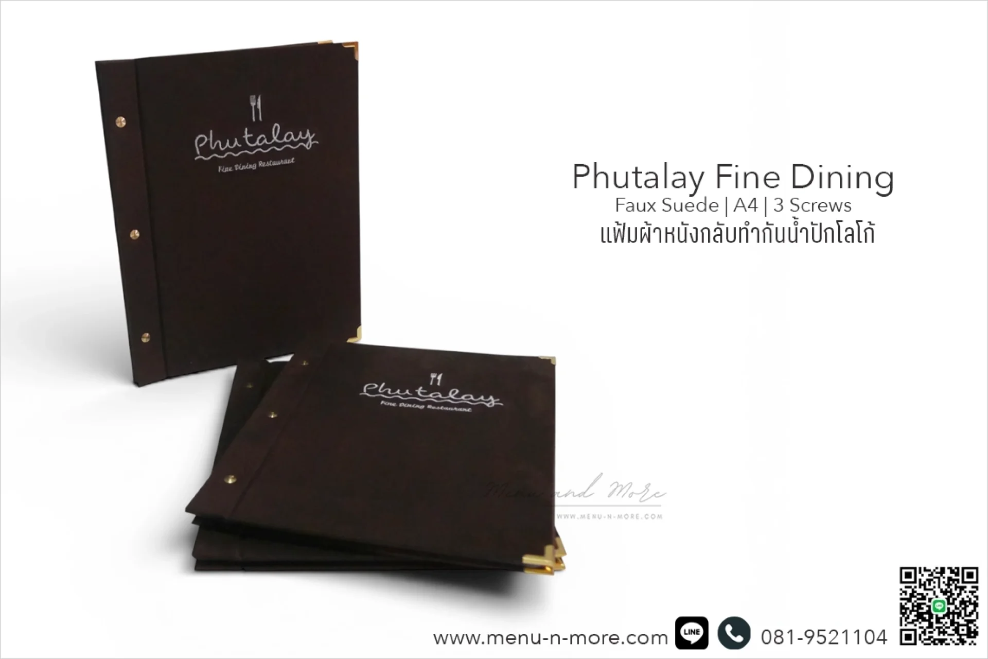 แฟ้มเมนูคอลเลกชันนี้ผสมผสานรูปลักษณ์เหนือกาลเวลาของผ้าหนังกลับเข้ากับเมนูร้านอาหารที่ทำความสะอาดง่ายและทนทาน