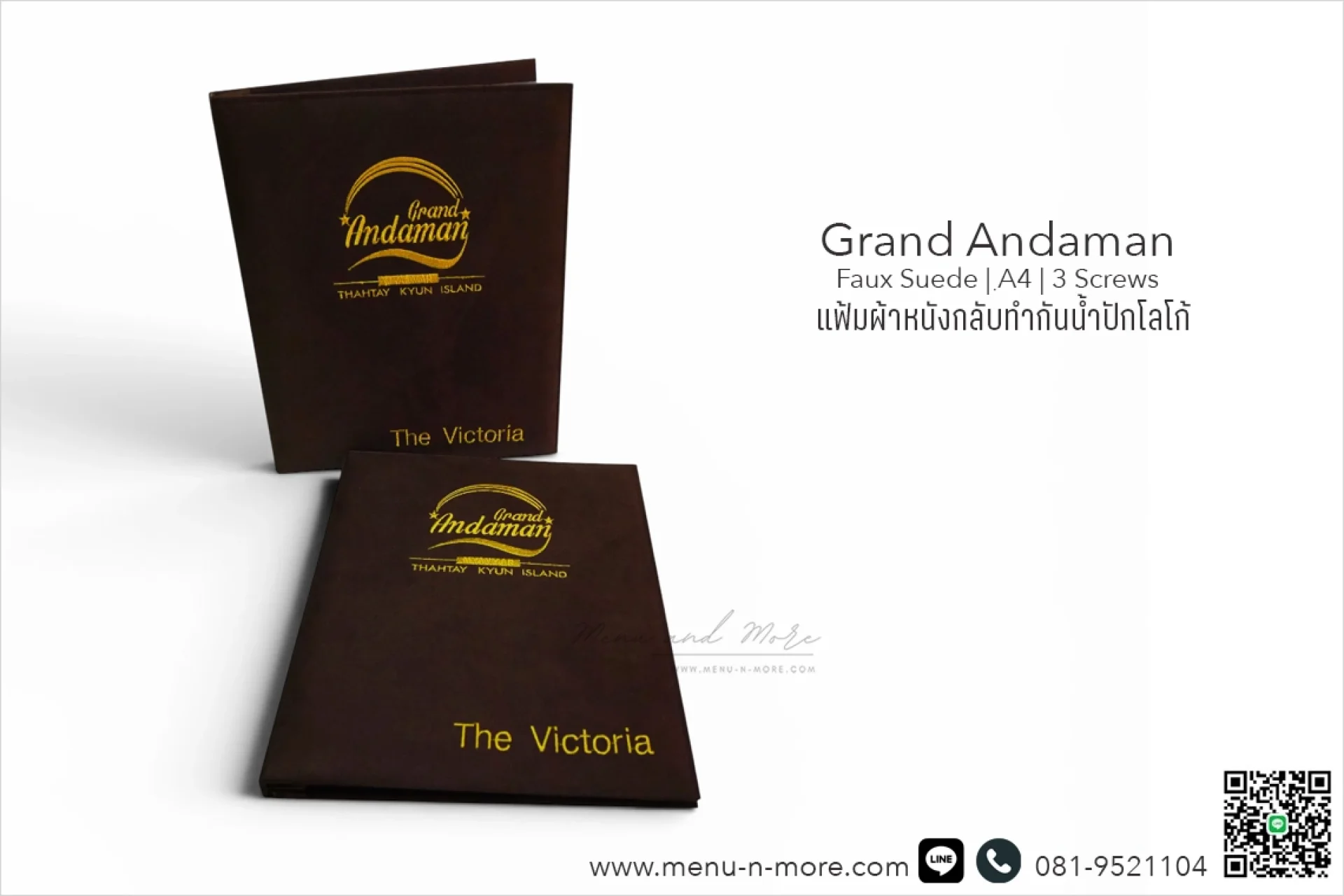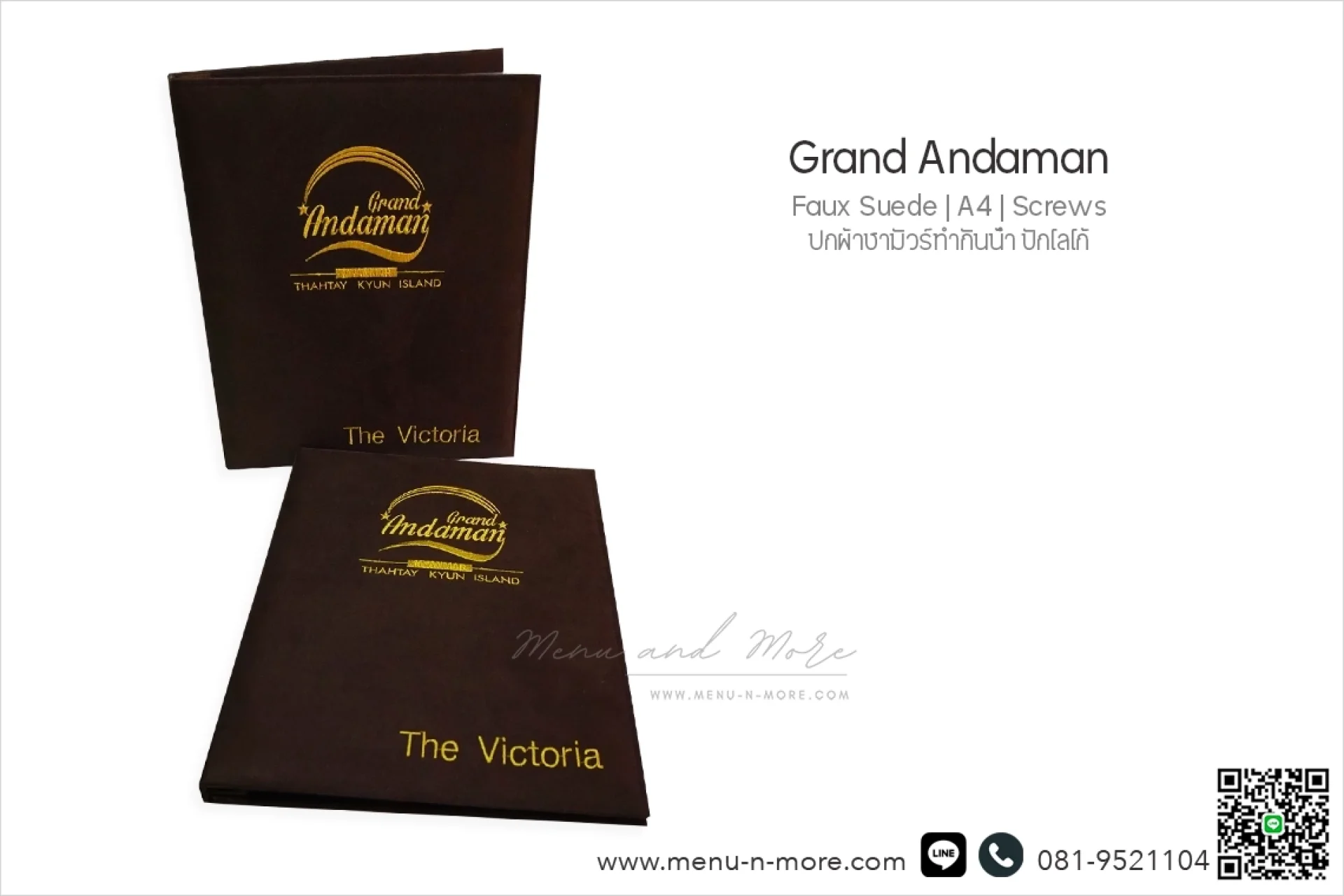 แฟ้มเมนูคอลเลกชันนี้ผสมผสานรูปลักษณ์เหนือกาลเวลาของผ้าหนังกลับเข้ากับเมนูร้านอาหารที่ทำความสะอาดง่ายและทนทาน