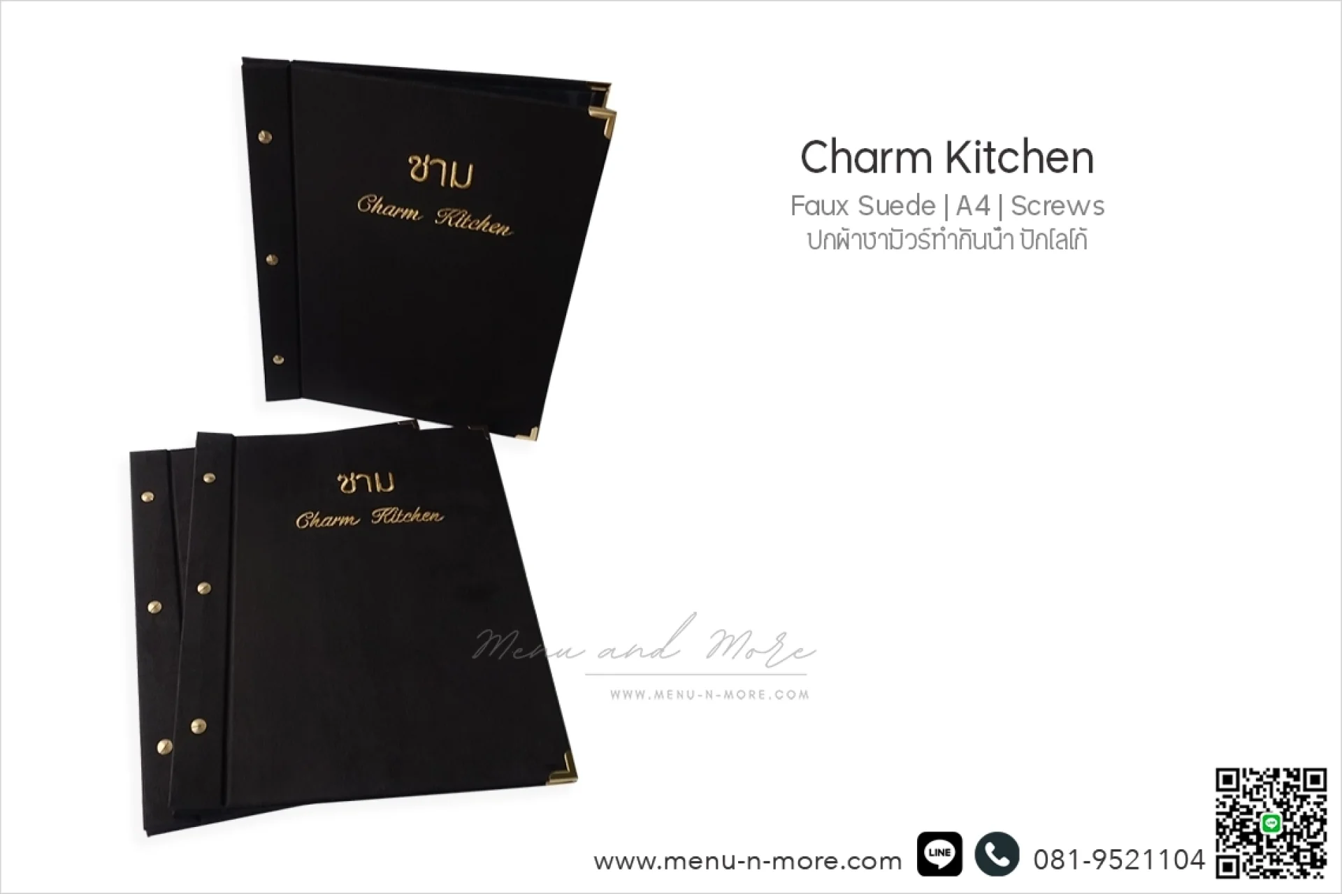 แฟ้มเมนูคอลเลกชันนี้ผสมผสานรูปลักษณ์เหนือกาลเวลาของผ้าหนังกลับเข้ากับเมนูร้านอาหารที่ทำความสะอาดง่ายและทนทาน