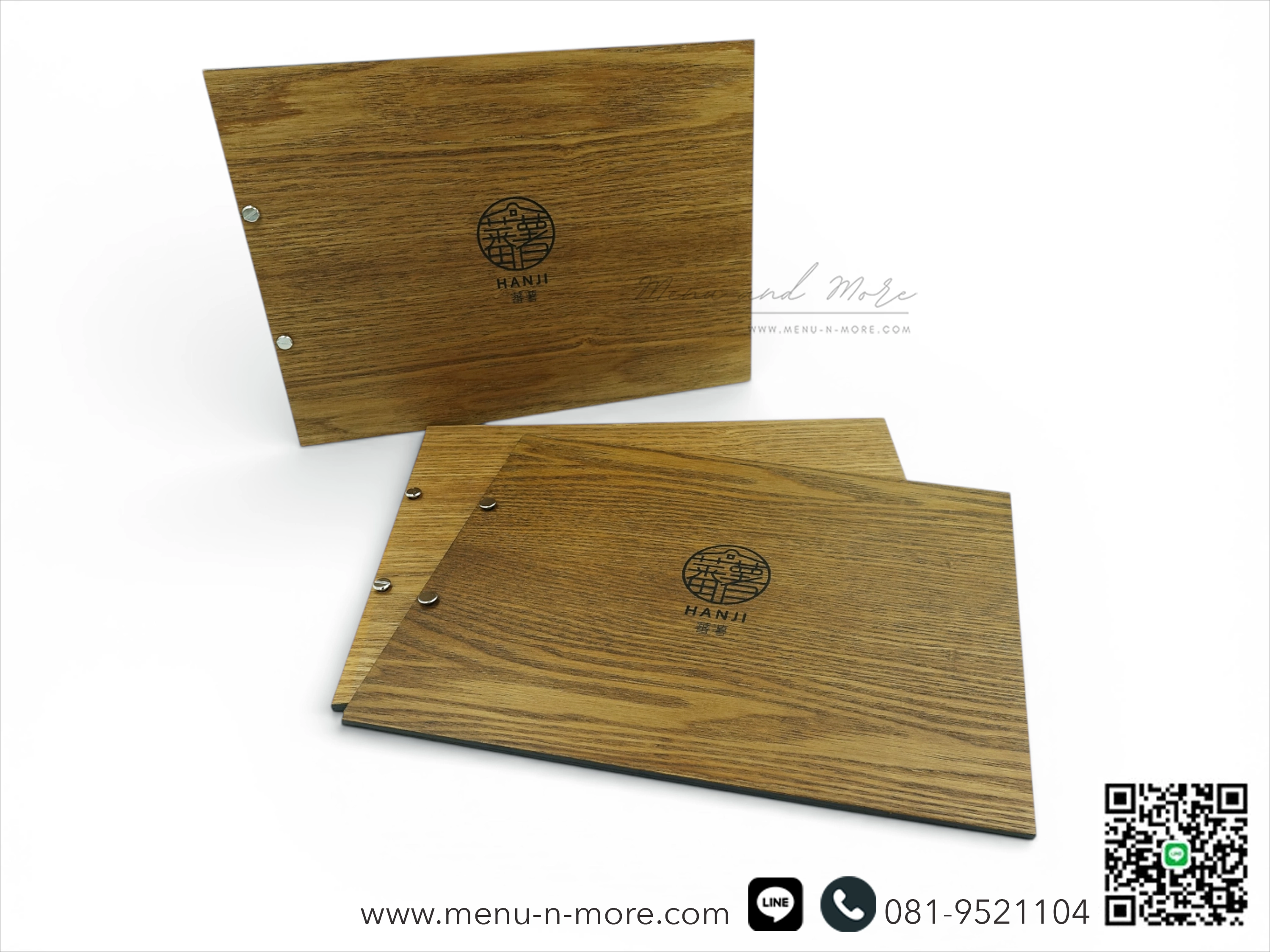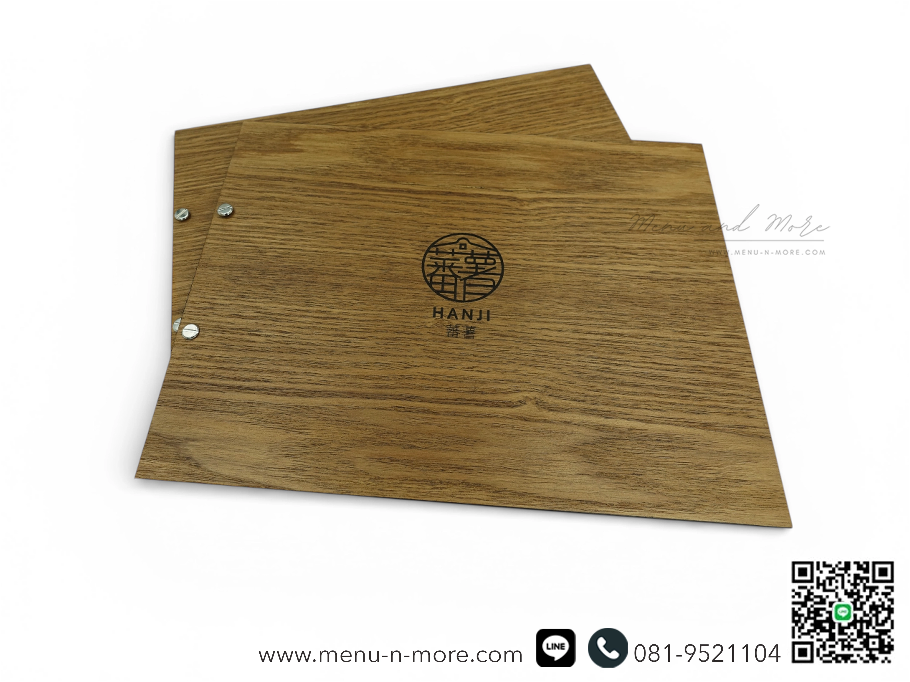 เลเซอร์ชื่อร้านอาหารบนแฟ้มเมนู เพิ่มความจดจำ ให้กับลูกค้าที่มาใช้บริการThe restaurant name was laser engraved in black to increase recognition among customers who used the service.