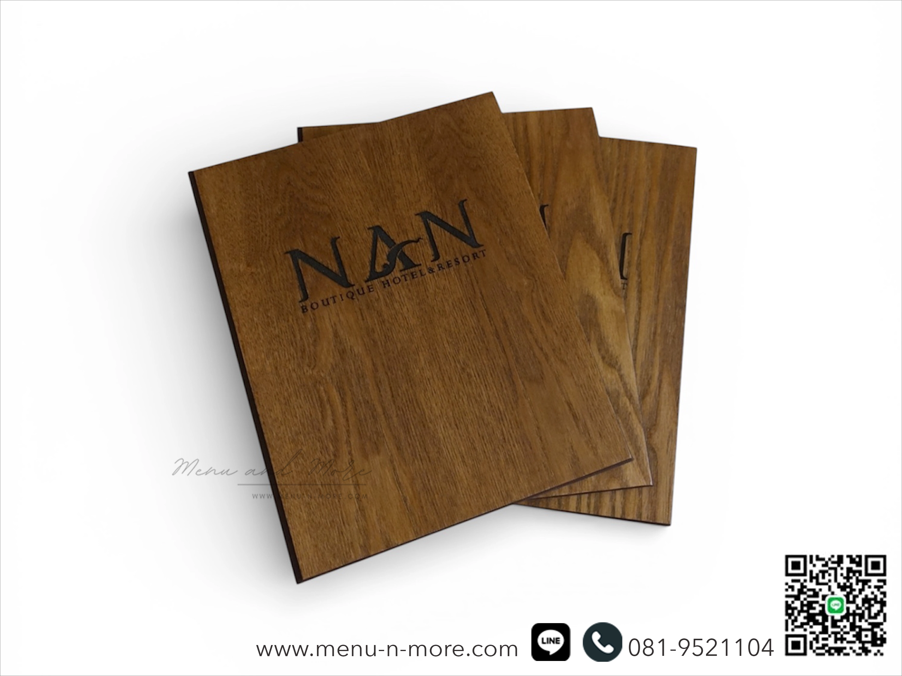 เลเซอร์แบรนด์ของคุณบนแฟ้มเมนูด้วยเทคโนโลยีของเรา ซึ่งใช้ได้กับไม้หลายชนิดและเทคนิคเลเซอร์ยังให้สัมผัสธรรมชาติของไม้อยู่