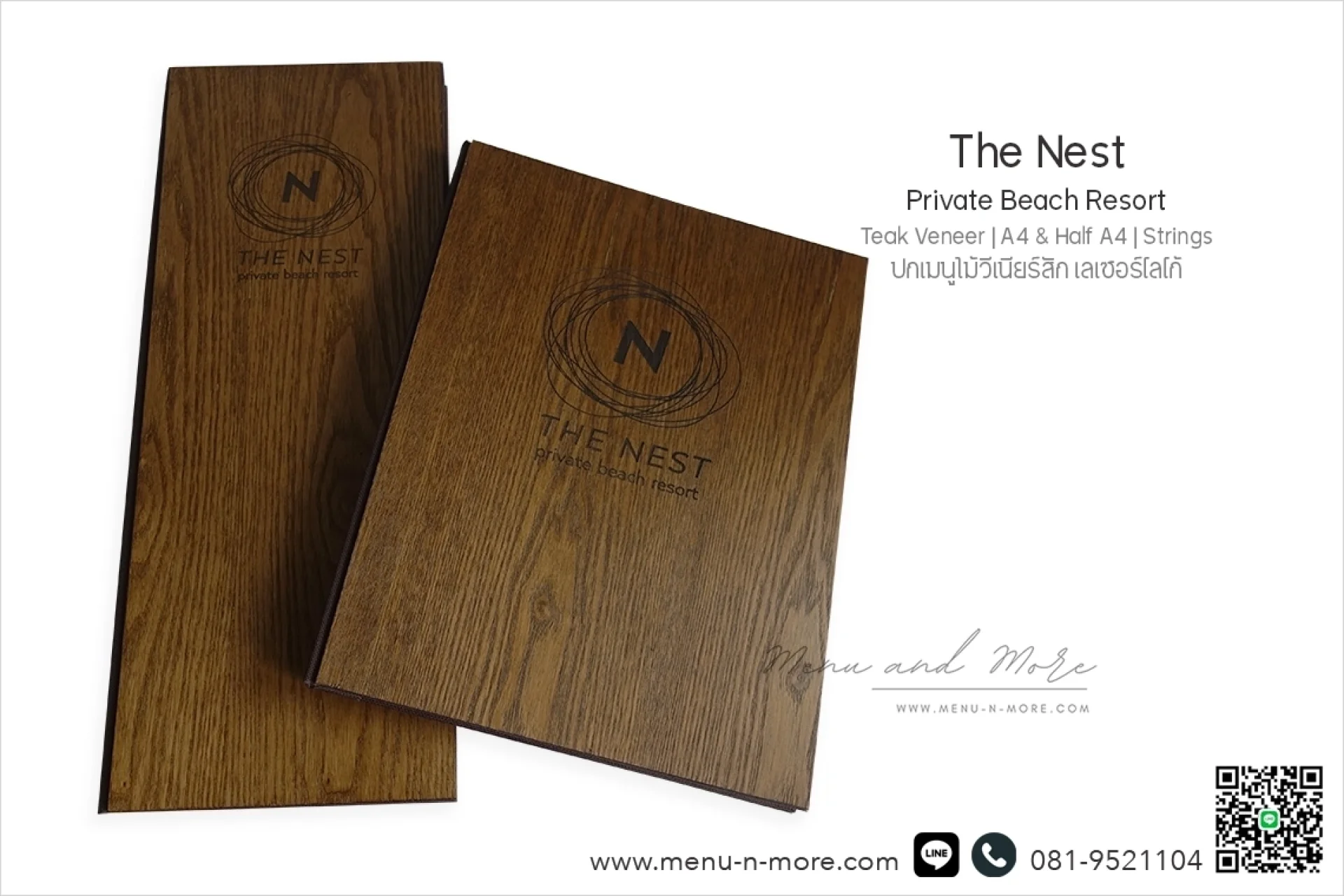 แฟ้มเมนูไม้มีให้เลือกทั้งแบบสีอ่อนและสีเข้ม หลากหลายขนาด และสามารถปรับแต่งตามแบบที่คุณต้องการเพื่อสร้างความโดดเด่นสะดุดตา แฟ้มเมนูแต่ละเล่มผ่านการขัดเงาด้วยมือ ดังนั้นสีของเมนูจึงอาจแตกต่างกันไปเนื่องจากคุณสมบัติตามธรรมชาติของไม้