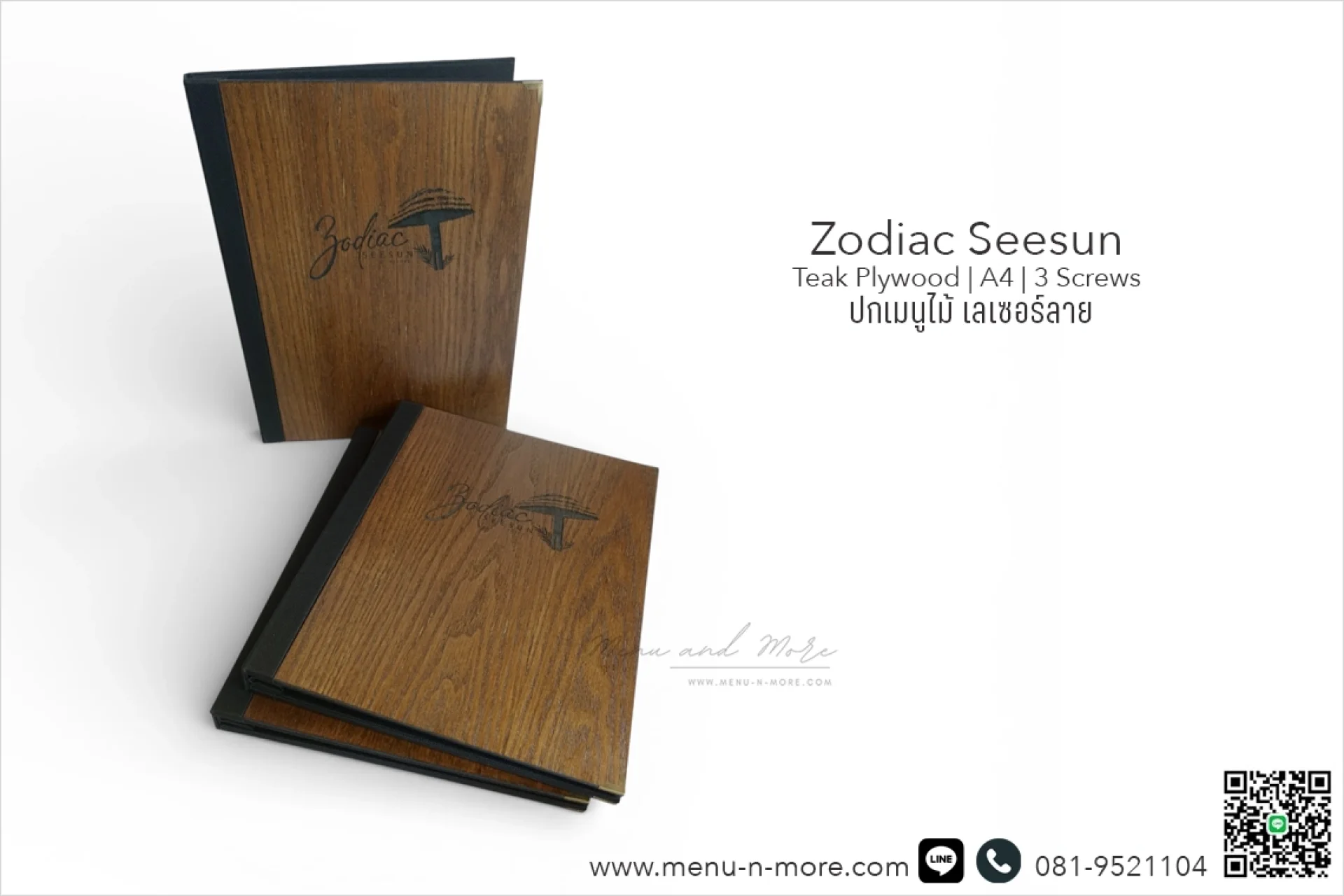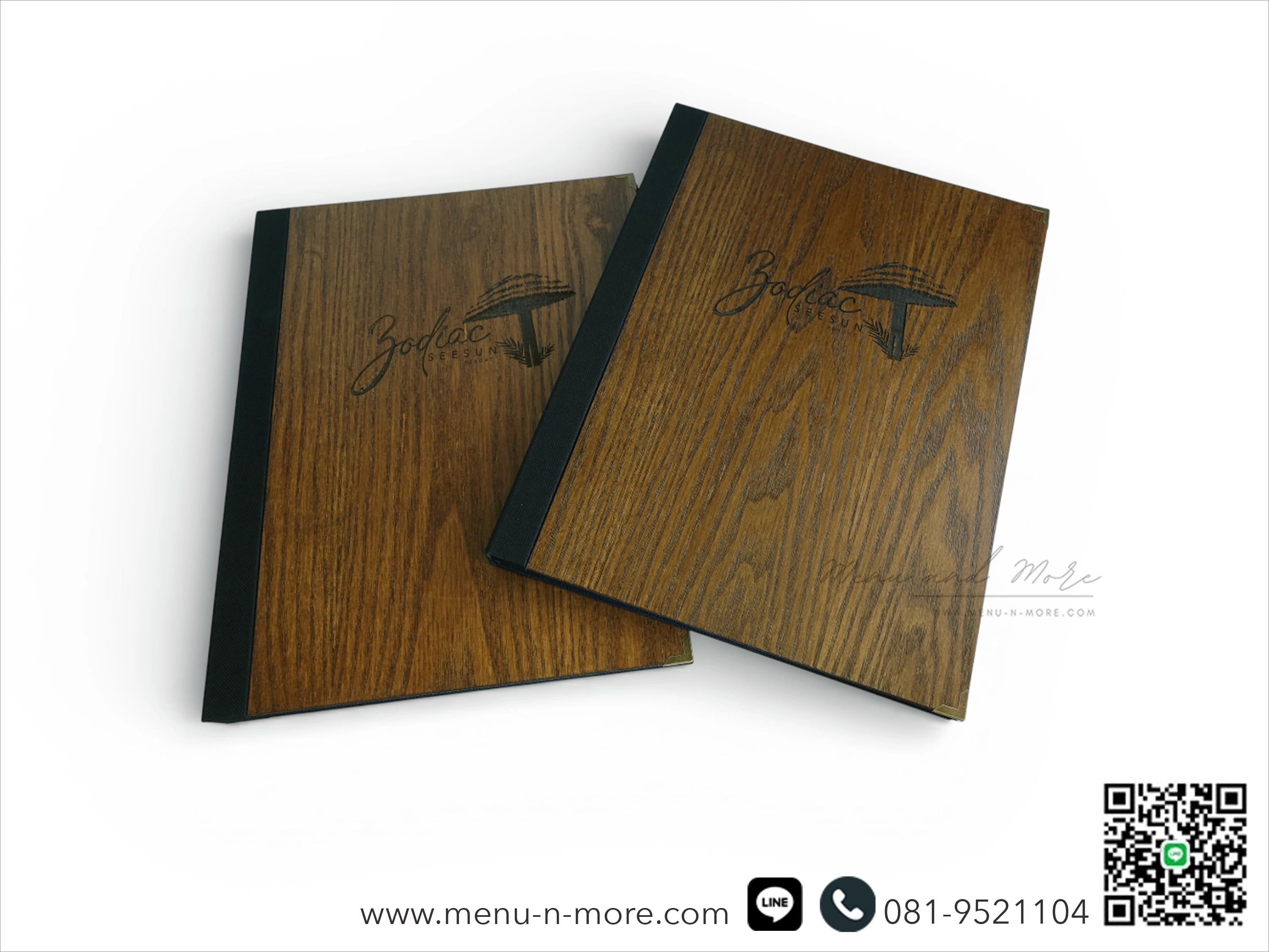 แฟ้มเมนูไม้มีให้เลือกทั้งแบบสีอ่อนและสีเข้ม หลากหลายขนาด และสามารถปรับแต่งตามแบบที่คุณต้องการเพื่อสร้างความโดดเด่นสะดุดตา แฟ้มเมนูแต่ละเล่มผ่านการขัดเงาด้วยมือ ดังนั้นสีของเมนูจึงอาจแตกต่างกันไปเนื่องจากคุณสมบัติตามธรรมชาติของไม้