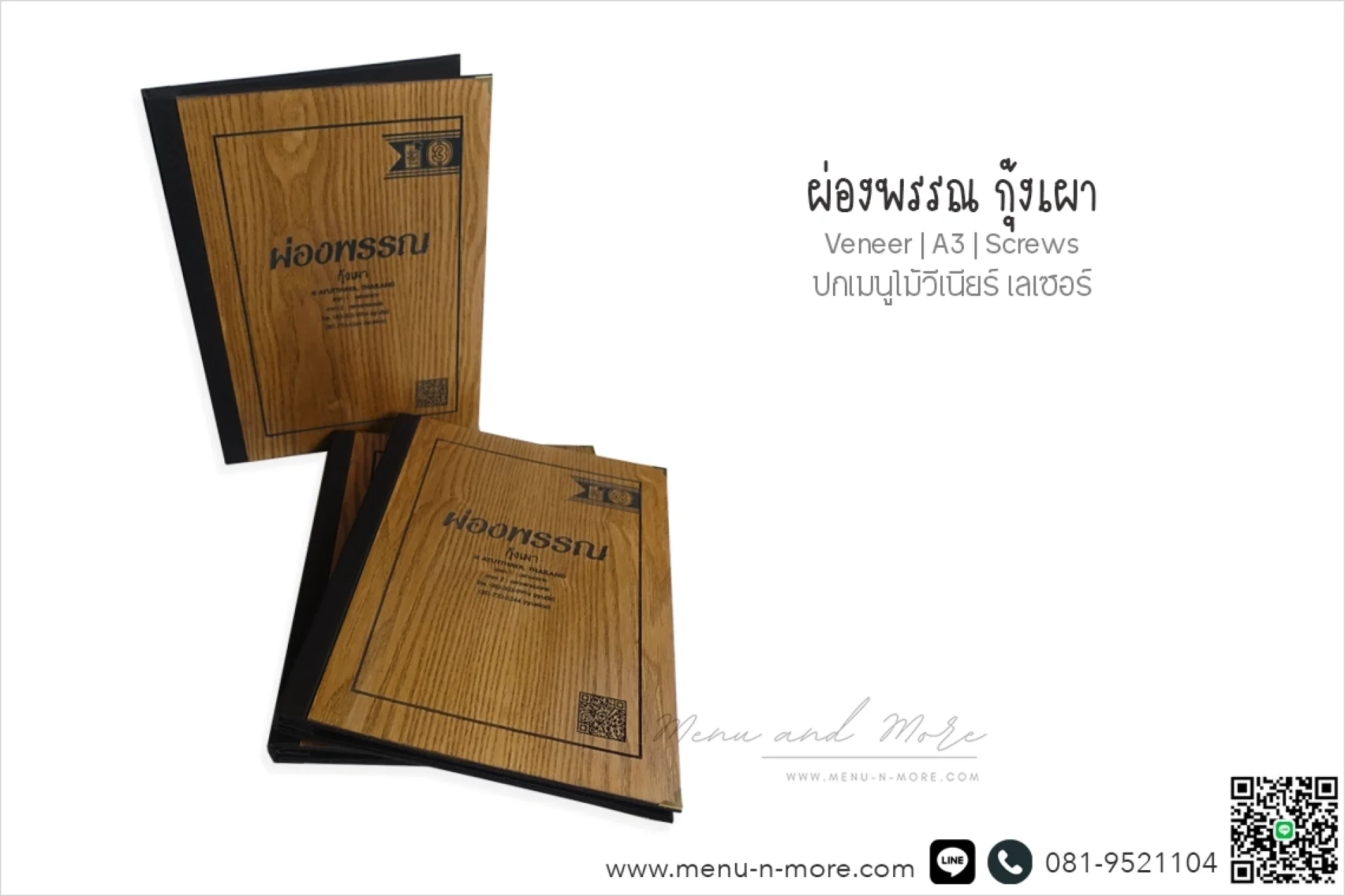 แฟ้มเมนูไม้มีให้เลือกทั้งแบบสีอ่อนและสีเข้ม หลากหลายขนาด และสามารถปรับแต่งตามแบบที่คุณต้องการเพื่อสร้างความโดดเด่นสะดุดตา แฟ้มเมนูแต่ละเล่มผ่านการขัดเงาด้วยมือ ดังนั้นสีของเมนูจึงอาจแตกต่างกันไปเนื่องจากคุณสมบัติตามธรรมชาติของไม้
