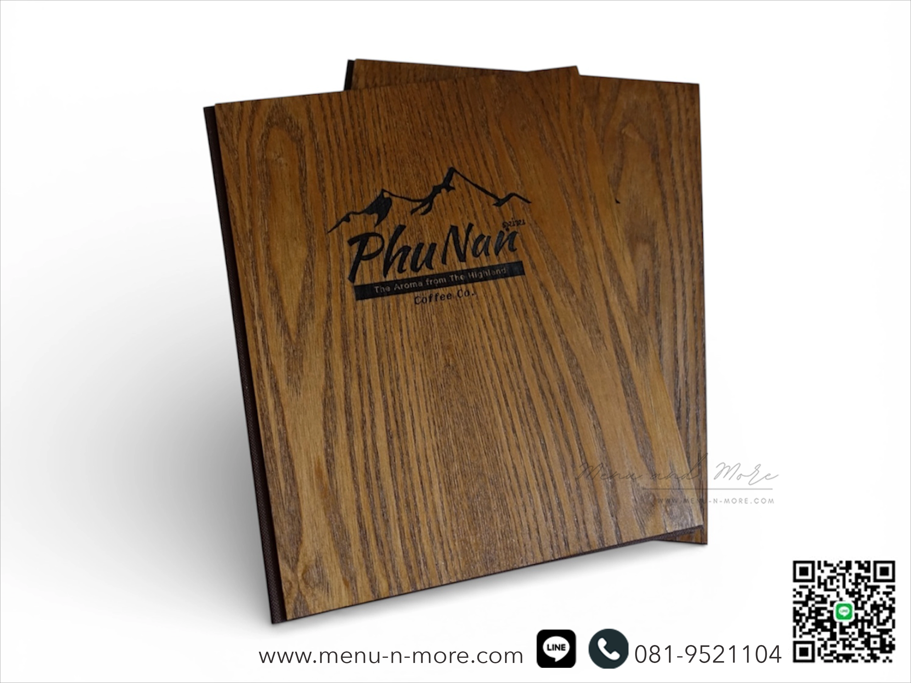 แฟ้มเมนูไม้มีให้เลือกทั้งแบบสีอ่อนและสีเข้ม หลากหลายขนาด