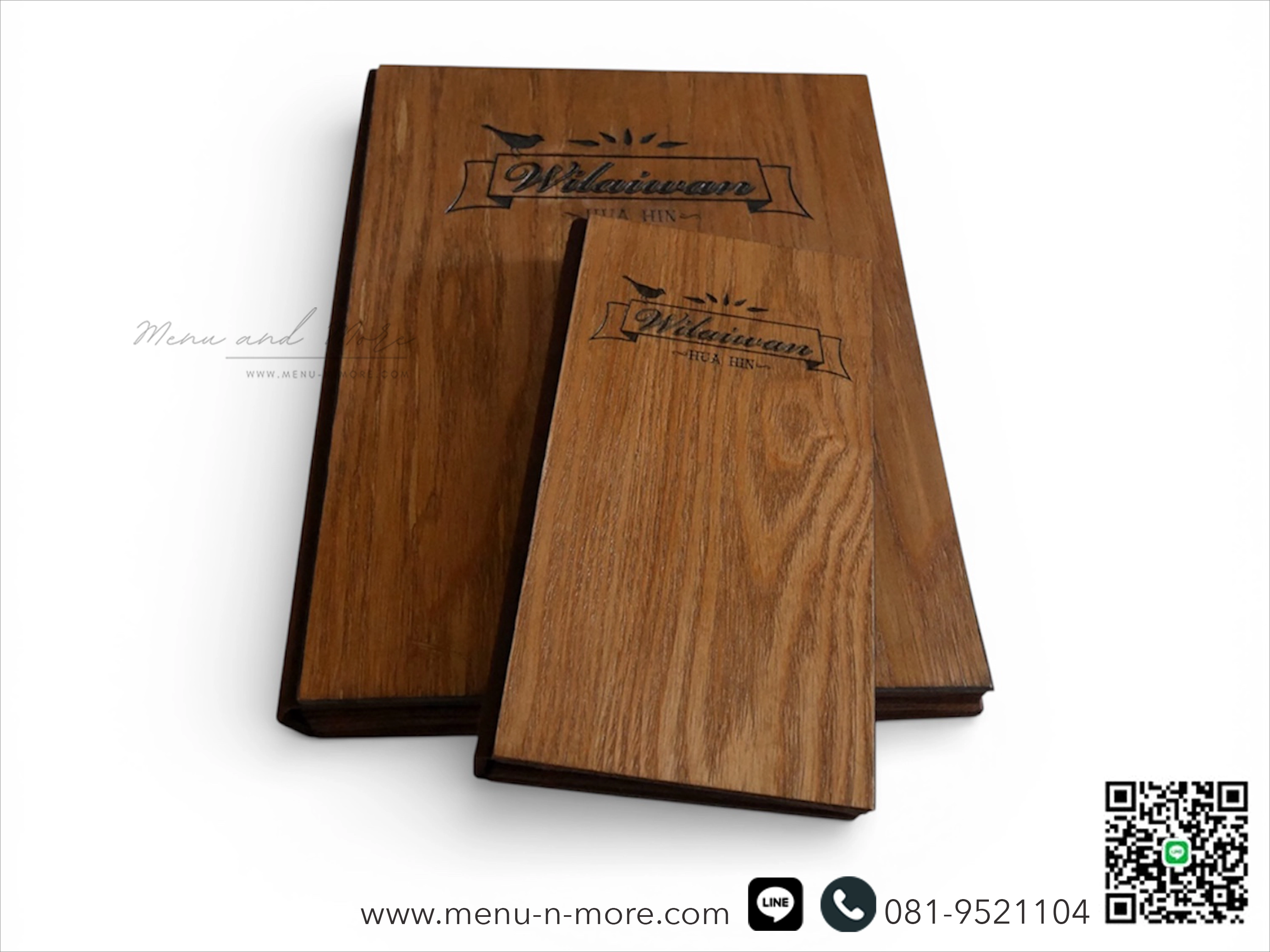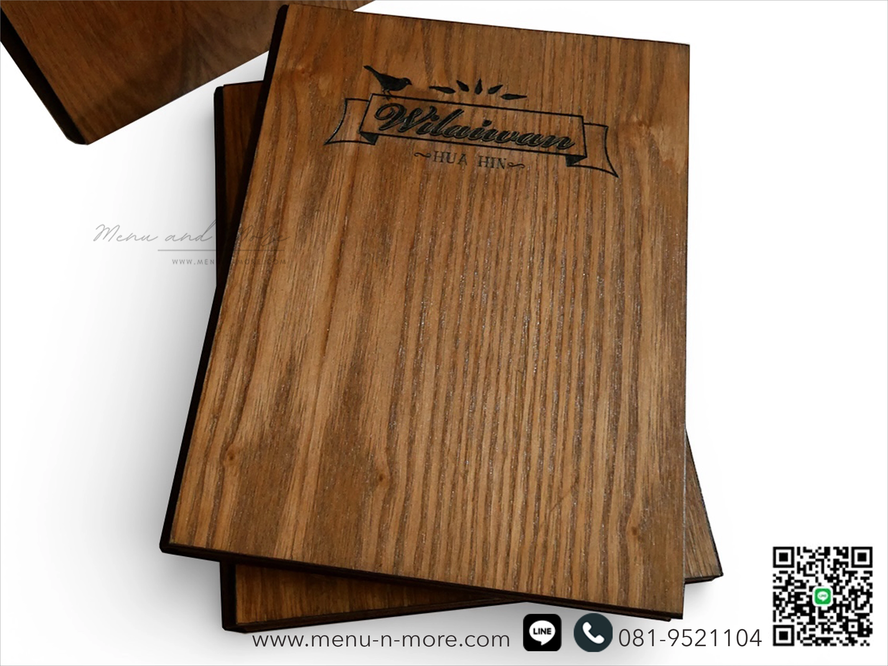 This custom menu cover is ideal for sophisticated restaurants and cafés, as it is made of durable wood and contains excellent printing for bespoke branding