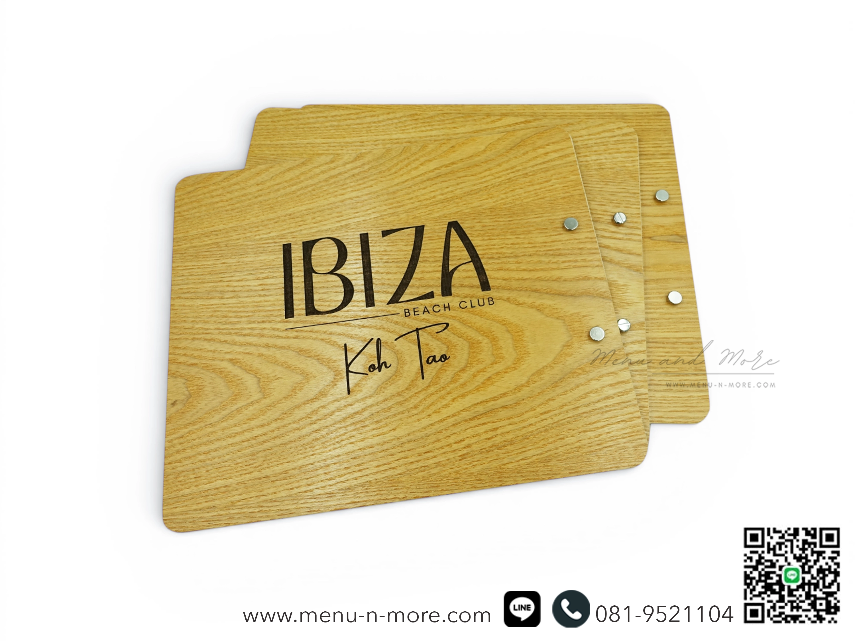 เลเซอร์ลงสีดำชื่อร้านอาหารบนแฟ้มเมนู เพิ่มความจดจำ ให้กับลูกค้าที่มาใช้บริการThe restaurant name was laser engraved in black to increase recognition among customers who used the service.