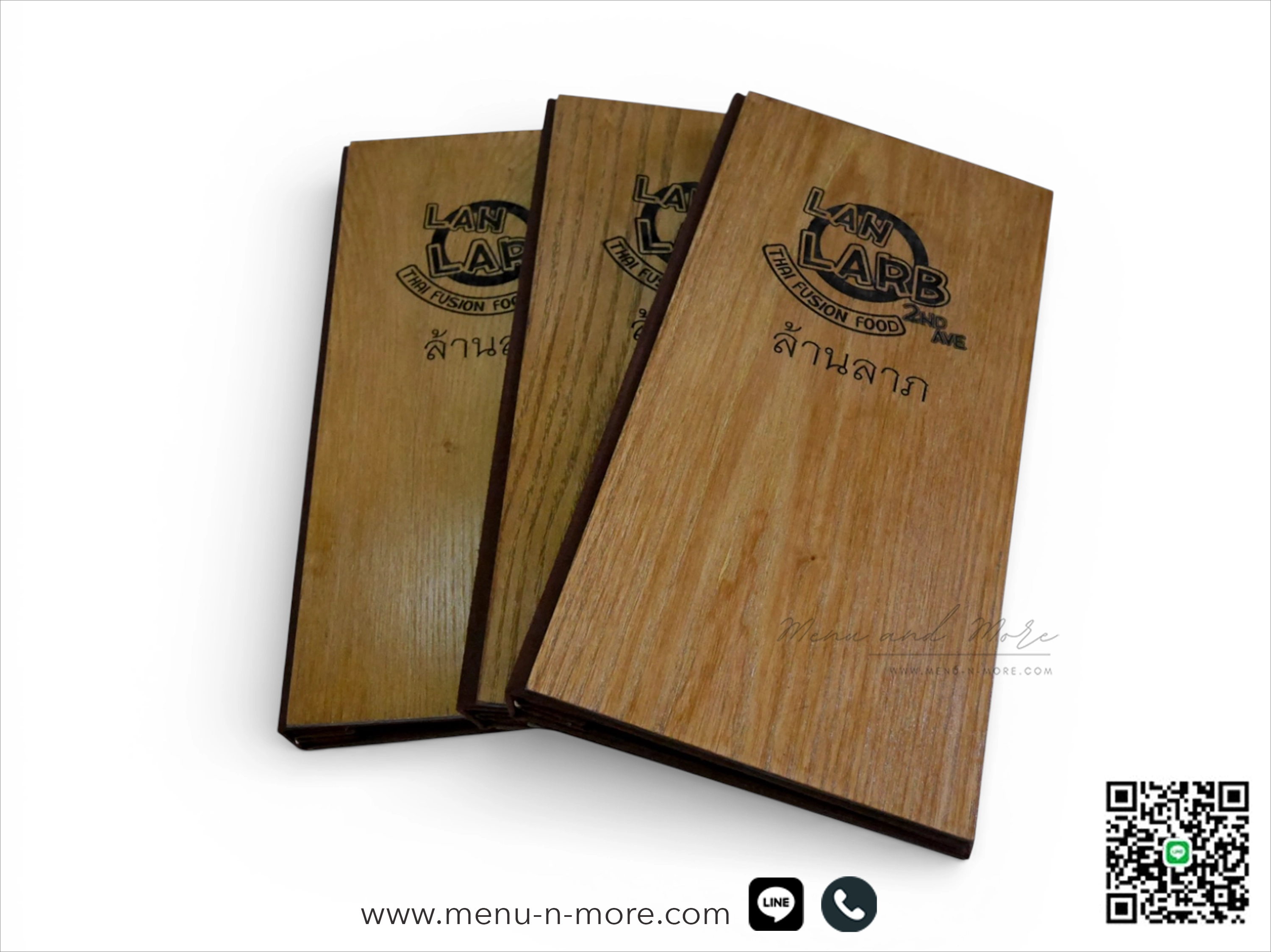 แฟ้มปกเมนูสั่งทำพิเศษจาก Menu and More สลักชื่อร้านด้วยเลเซอร์ มีไม้ให้เลือกถึง 10 แบบ