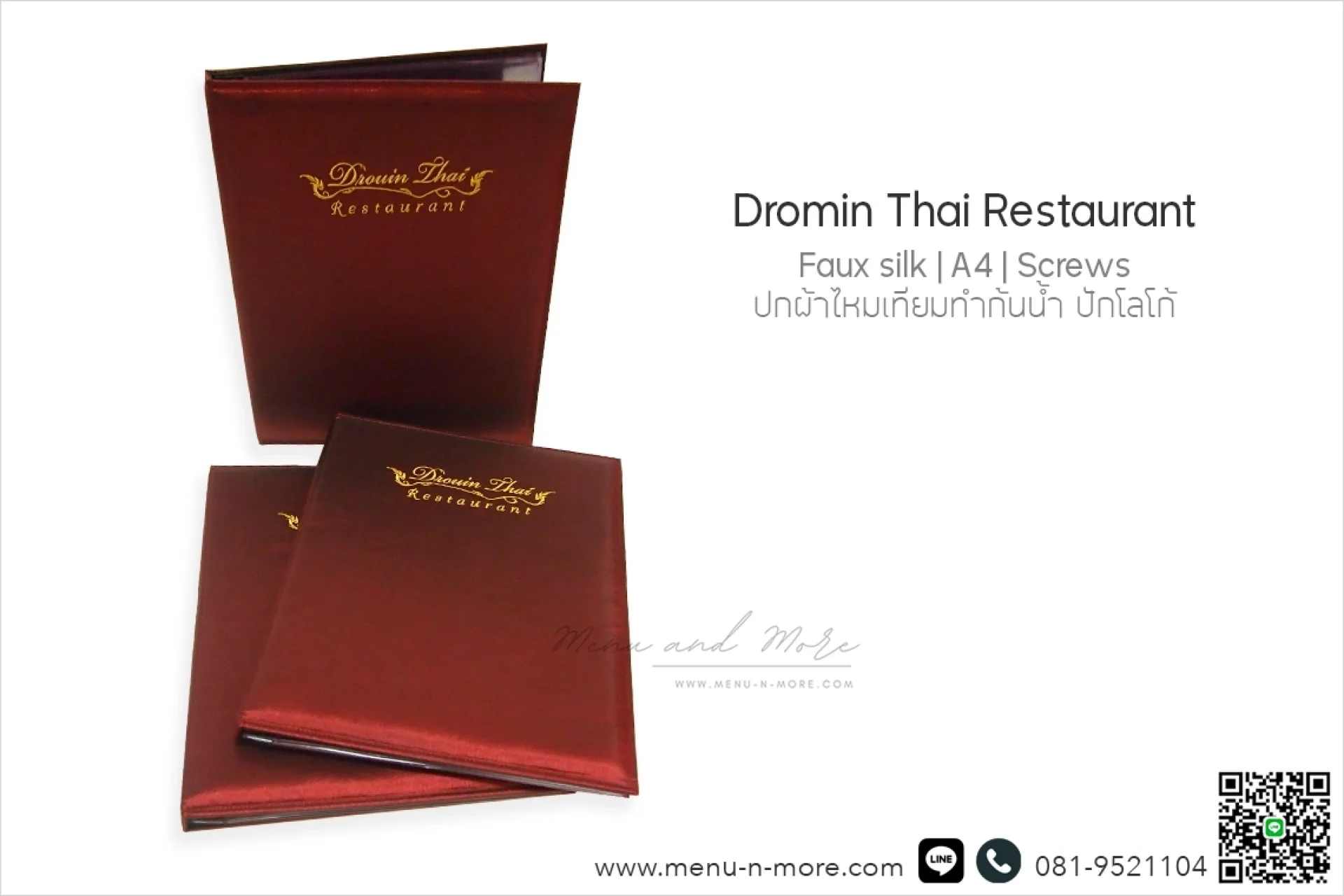แฟ้มเมนูคอลเลกชันนี้ผสมผสานรูปลักษณ์เหนือกาลเวลาของผ้าไหมเทียมเข้ากับเมนูร้านอาหารที่ทำความสะอาดง่ายและทนทาน