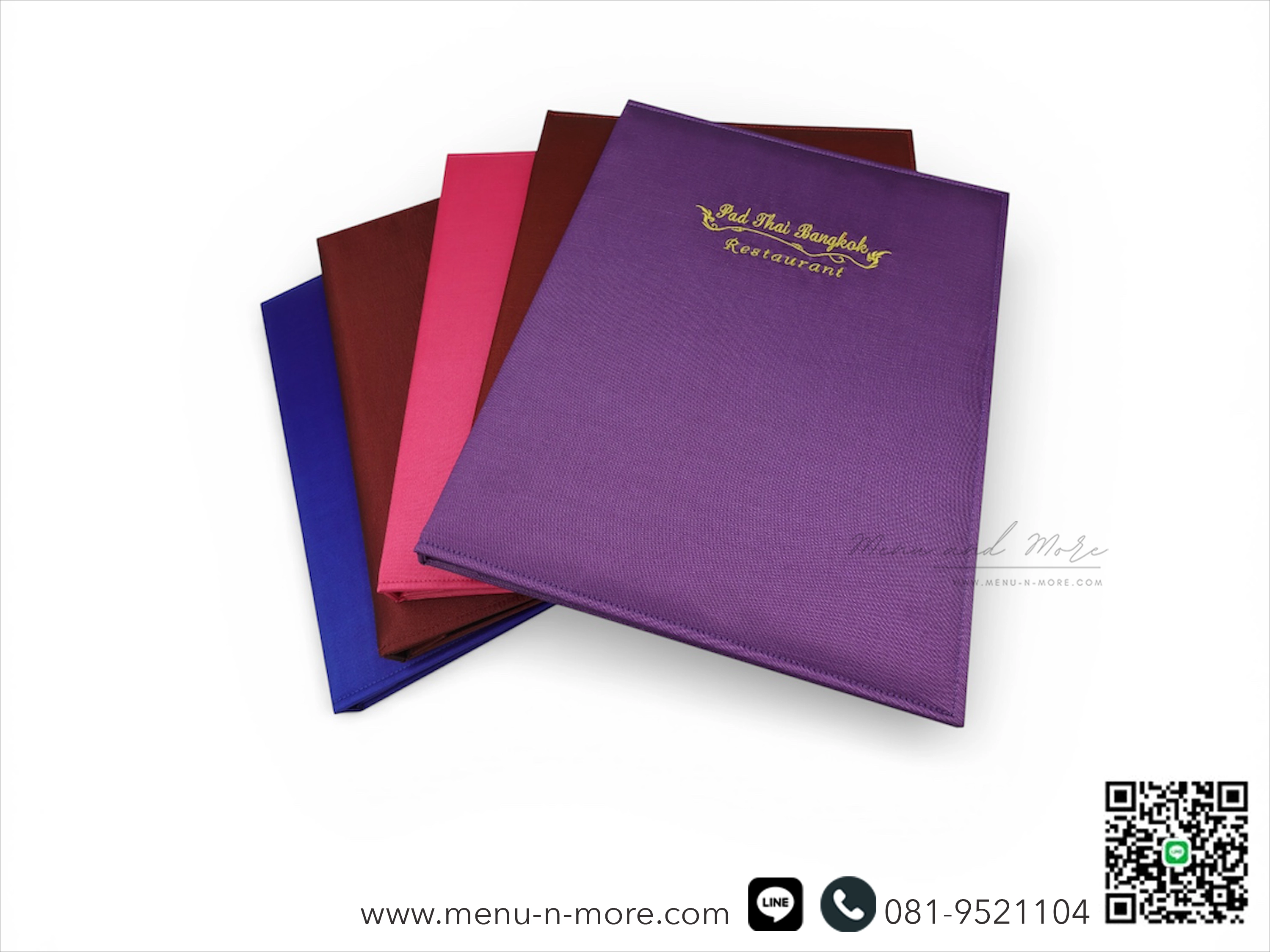 แฟ้มเมนูคอลเลกชันนี้ผสมผสานรูปลักษณ์เหนือกาลเวลาของผ้าเข้ากับเมนูร้านอาหารที่ทำความสะอาดง่ายและทนทาน
