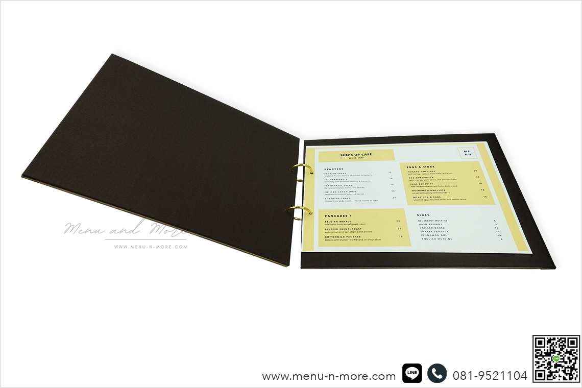 แฟ้มเมนูแต่ละเล่มผ่านการขัดเงาด้วยมือ ดังนั้นสีของเมนูจึงอาจแตกต่างกันไป