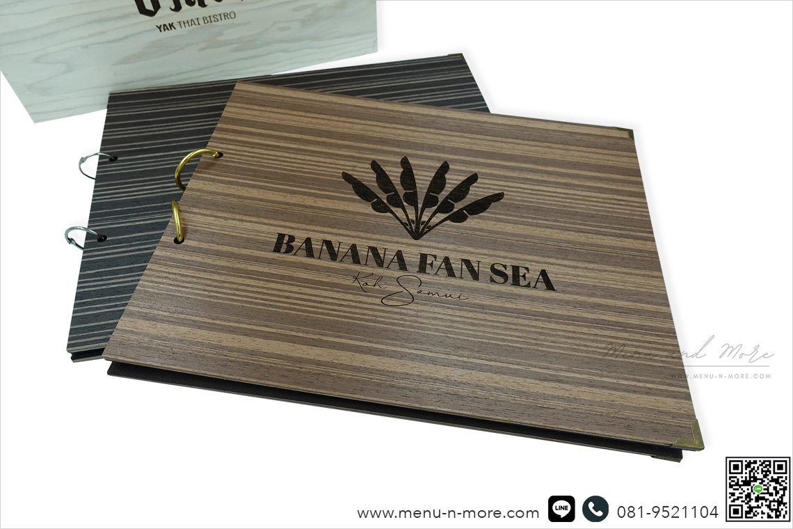 แฟ้มเมนูไม้มีให้เลือกทั้งแบบสีอ่อนและสีเข้ม หลากหลายขนาด
