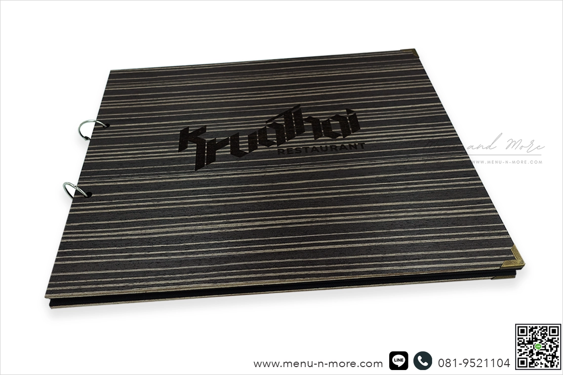 แฟ้มเมนูไม้มีให้เลือกทั้งแบบสีอ่อนและสีเข้ม หลากหลายขนาด