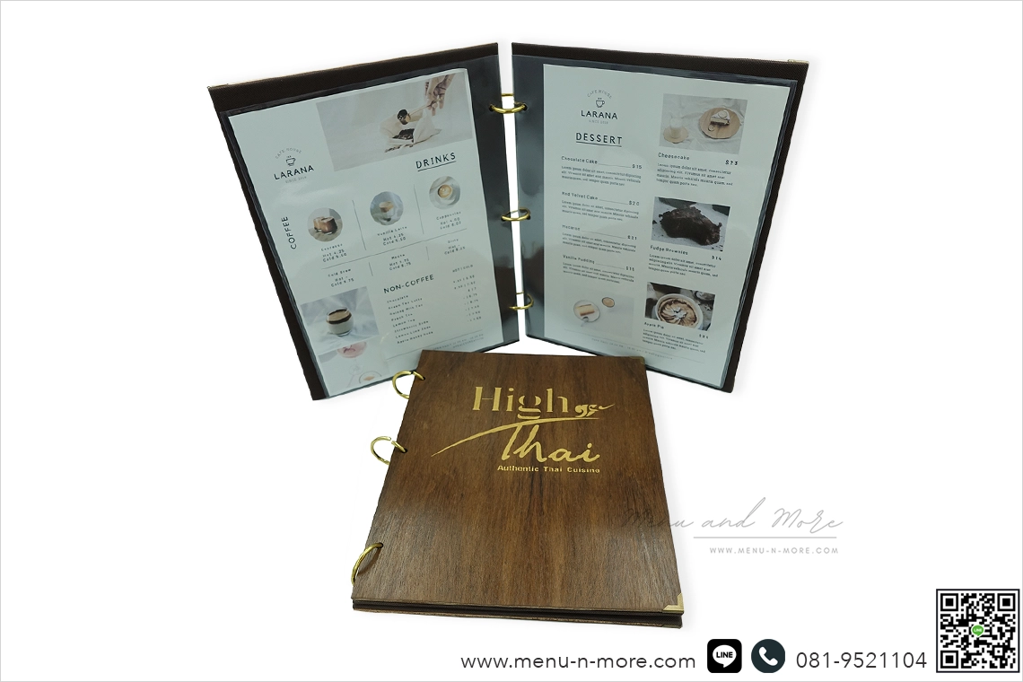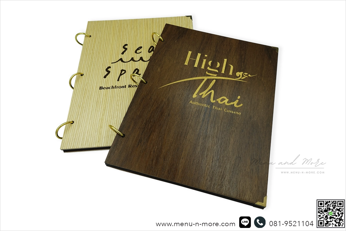 แฟ้มเมนูไม้มีให้เลือกทั้งแบบสีอ่อนและสีเข้ม หลากหลายขนาด