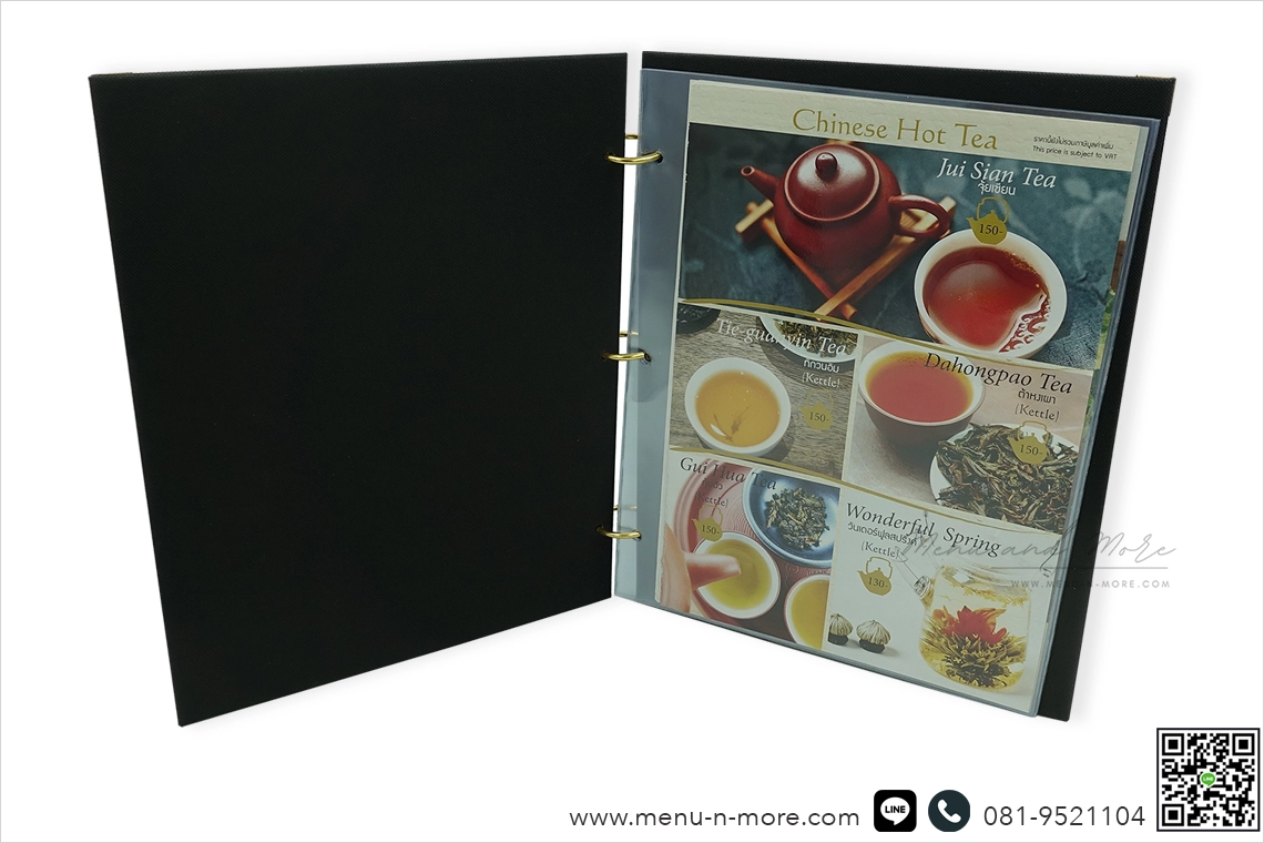 แฟ้มเมนูแต่ละเล่มผ่านการขัดเงาด้วยมือ ดังนั้นสีของเมนูจึงอาจแตกต่างกันไปเนื่องจากคุณสมบัติตามธรรมชาติของไม้