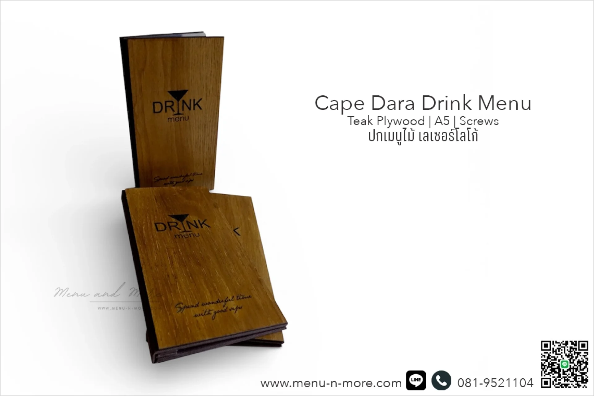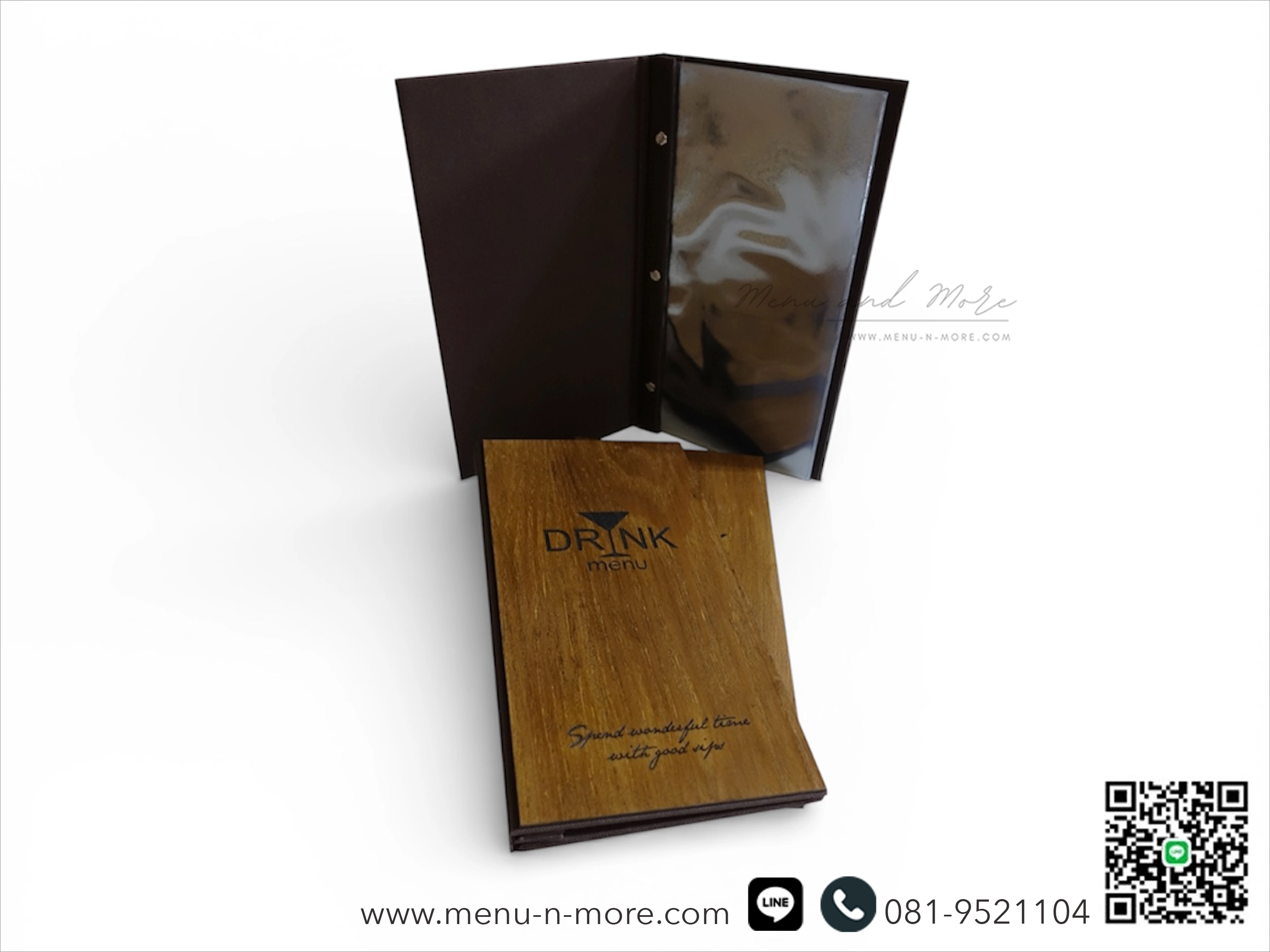 แฟ้มปกเมนูสั่งทำพิเศษจาก Menu and More สลักชื่อร้านด้วยเลเซอร์ มีไม้ให้เลือกถึง 10 แบบ
