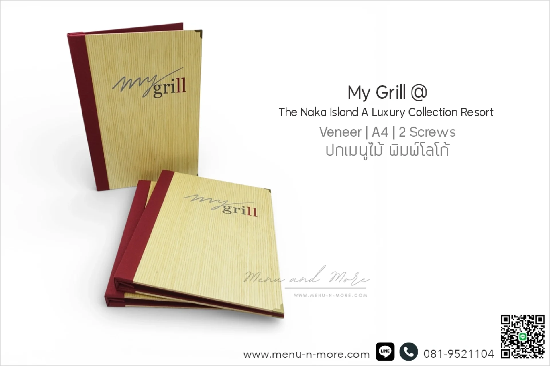 แฟ้มเมนูแต่ละเล่มผ่านการขัดเงาด้วยมือ ดังนั้นสีของเมนูจึงอาจแตกต่างกันไปเนื่องจากคุณสมบัติตามธรรมชาติของไม้