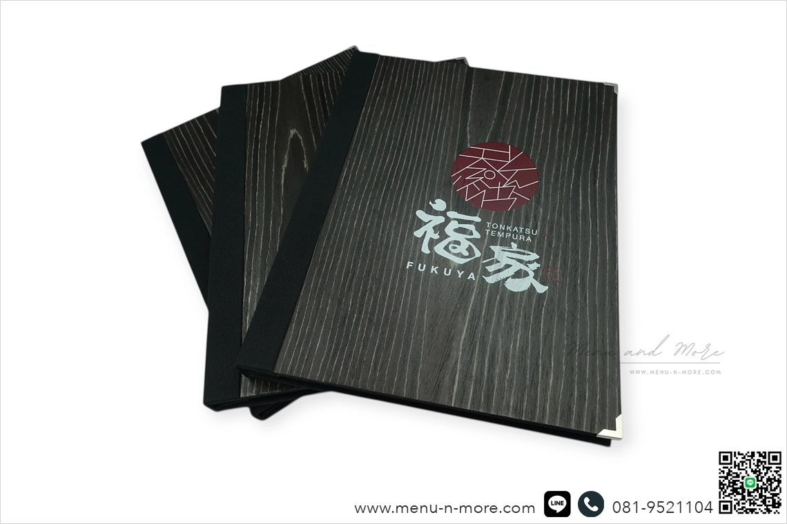 แฟ้มเมนูแต่ละเล่มผ่านการขัดเงาด้วยมือ ดังนั้นสีของเมนูจึงอาจแตกต่างกันไปเนื่องจากคุณสมบัติตามธรรมชาติของไม้