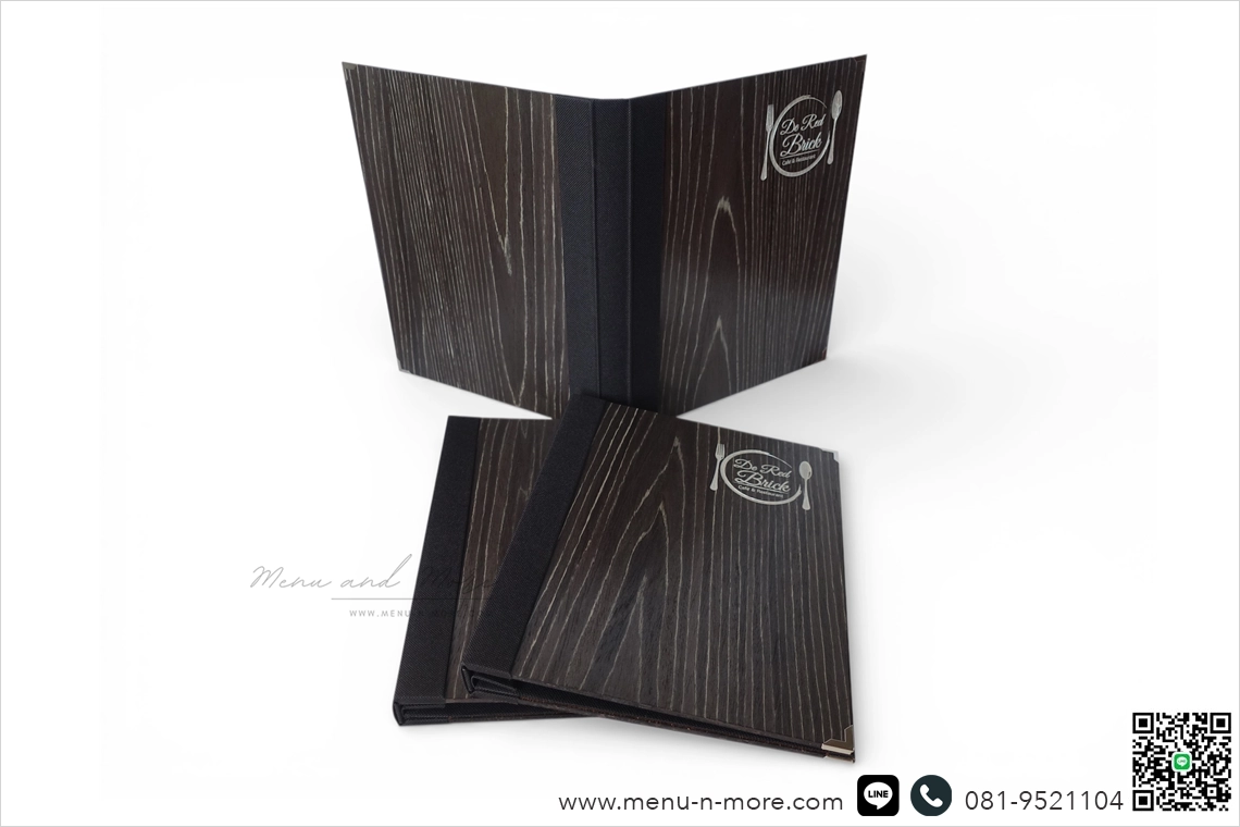 แฟ้มปกเมนูสั่งทำพิเศษจาก Menu and More สลักชื่อร้านด้วยเลเซอร์ มีไม้ให้เลือกถึง 10 แบบ