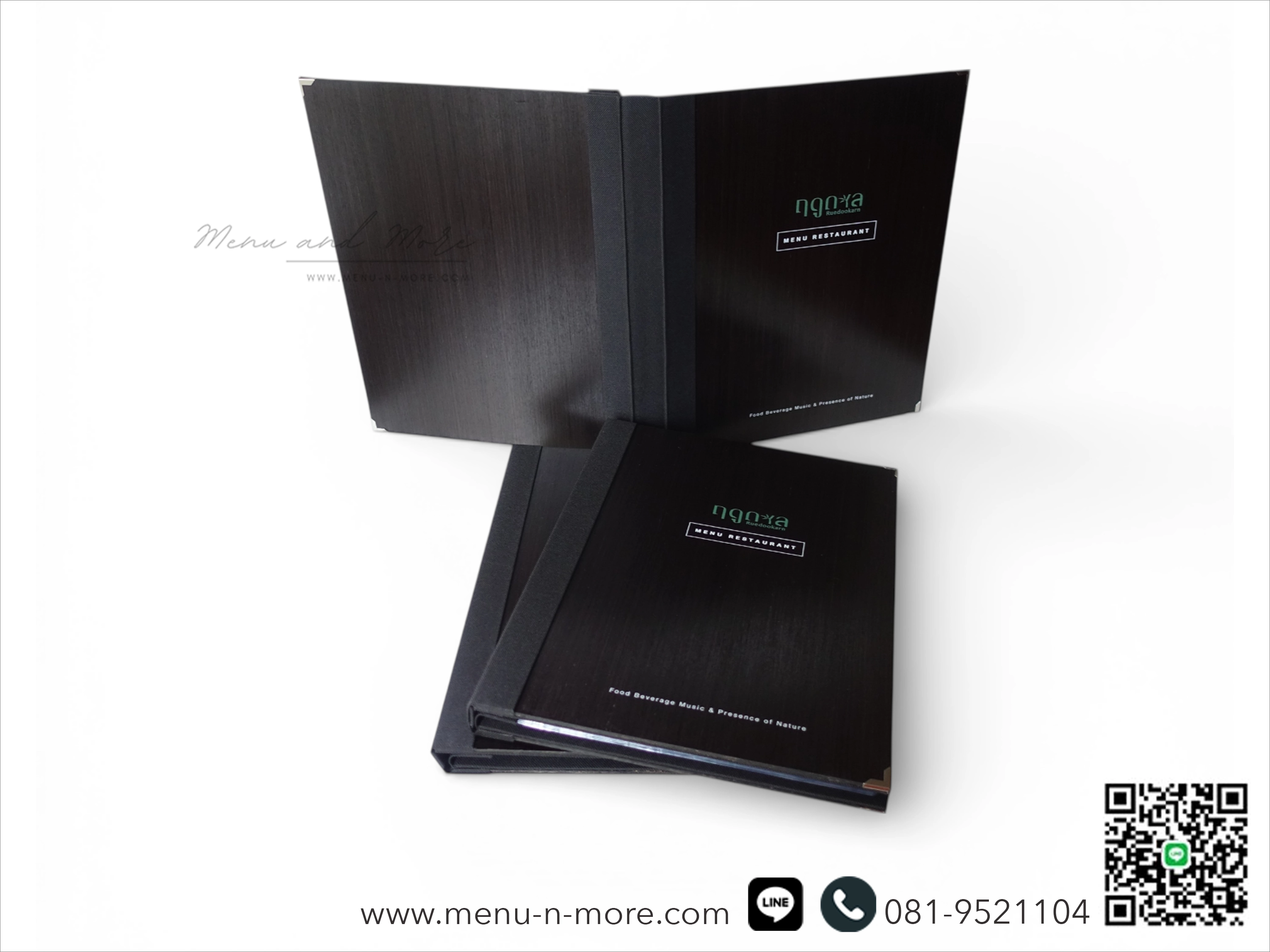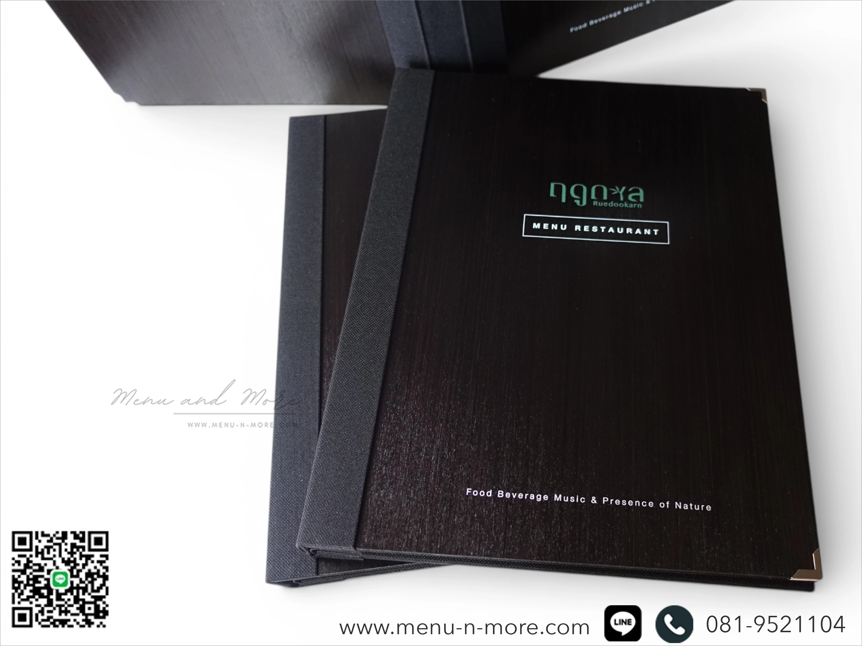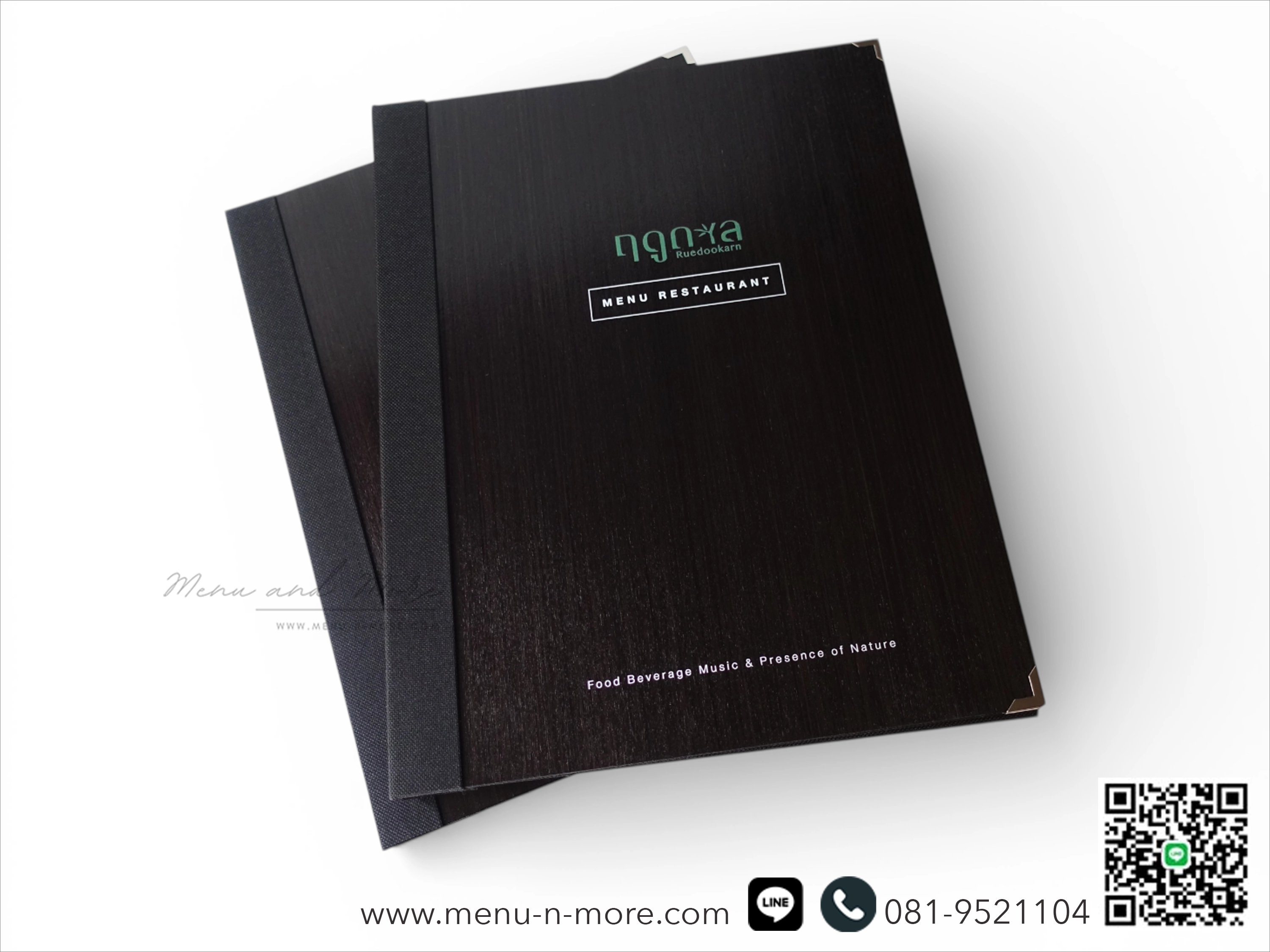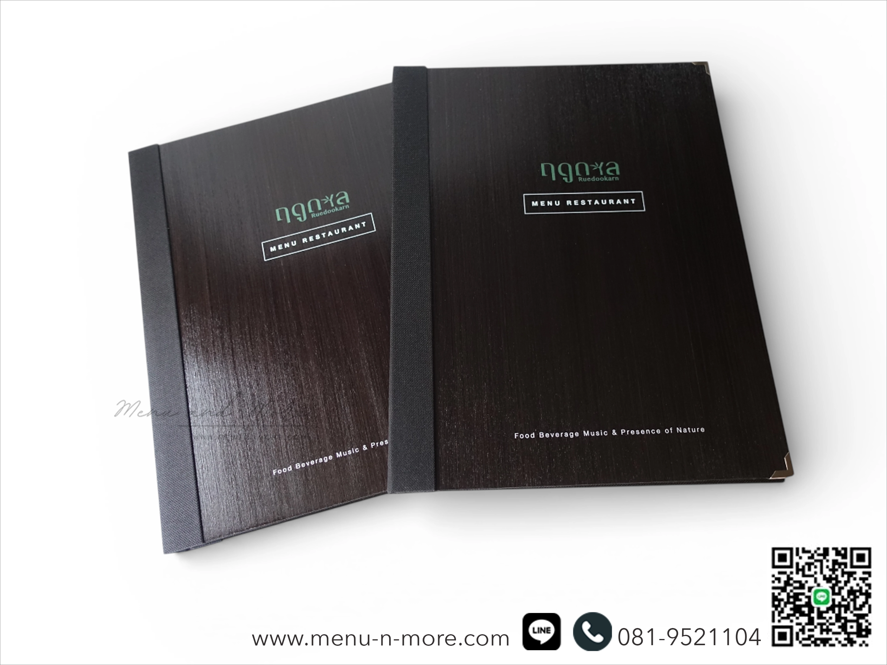 แฟ้มเมนูสั่งทำพิเศษจาก Menu and More พิมพ์ชื่อร้าน มีไม้ให้เลือกถึง 10 แบบ