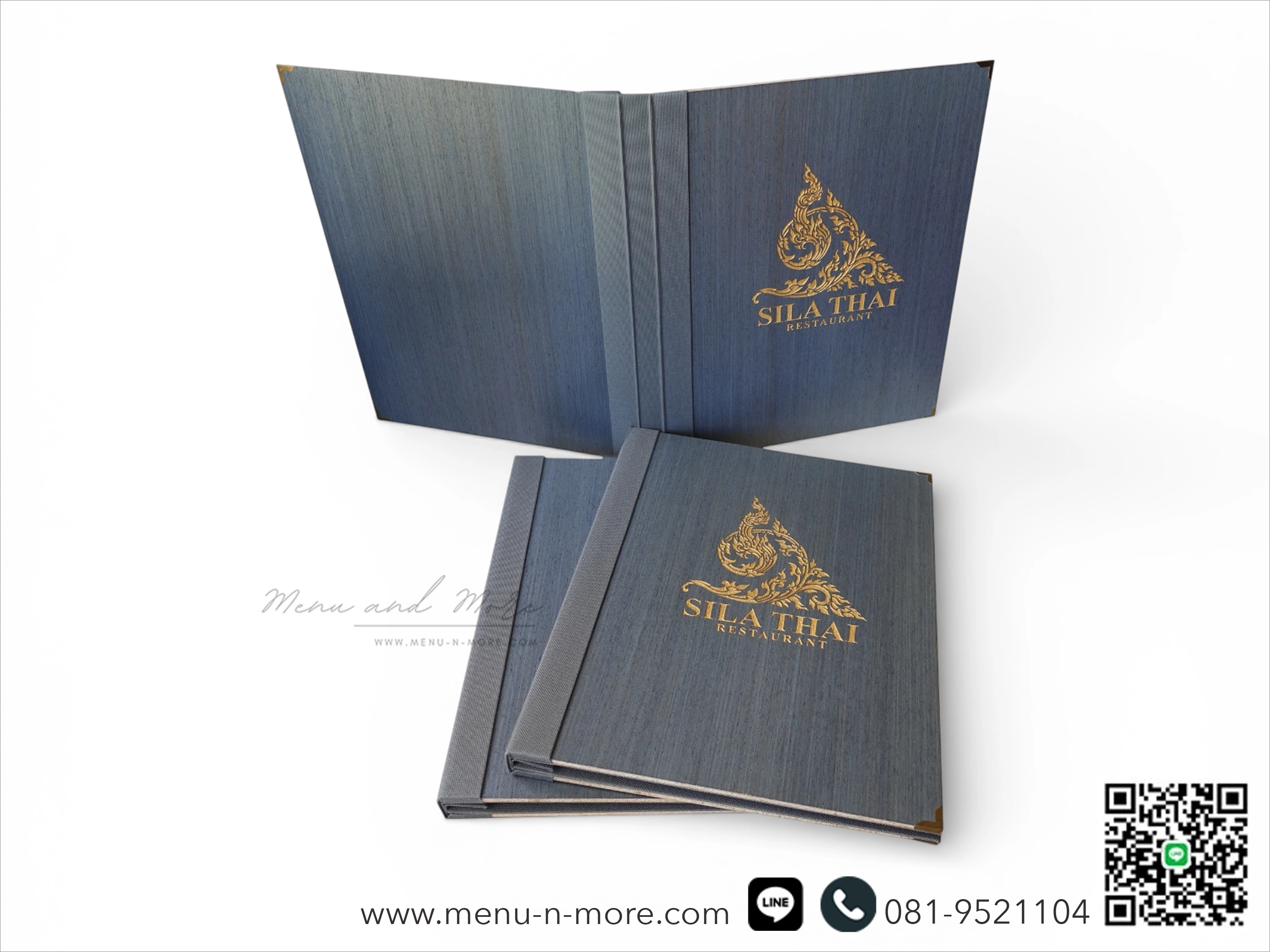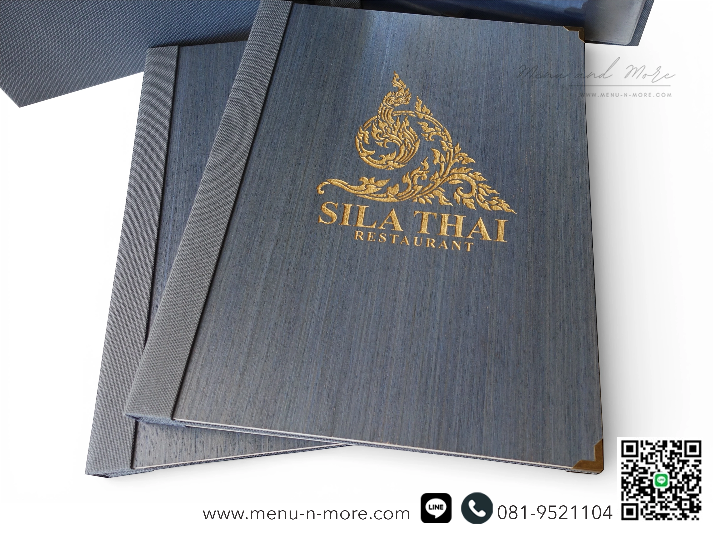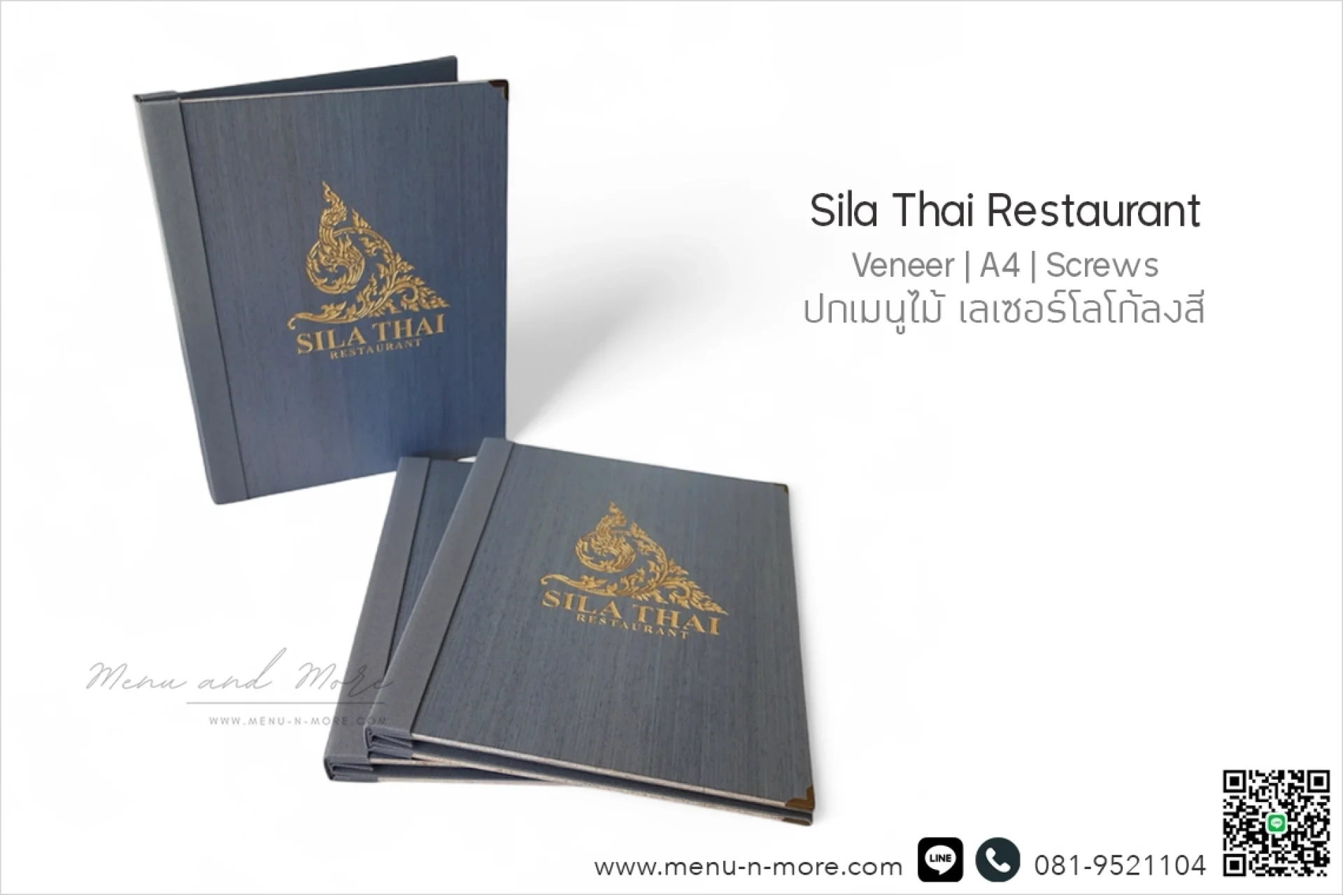 แฟ้มเมนูสั่งทำพิเศษจาก Menu and More สลักชื่อร้านด้วยเลเซอร์ มีไม้ให้เลือกถึง 10 แบบ
