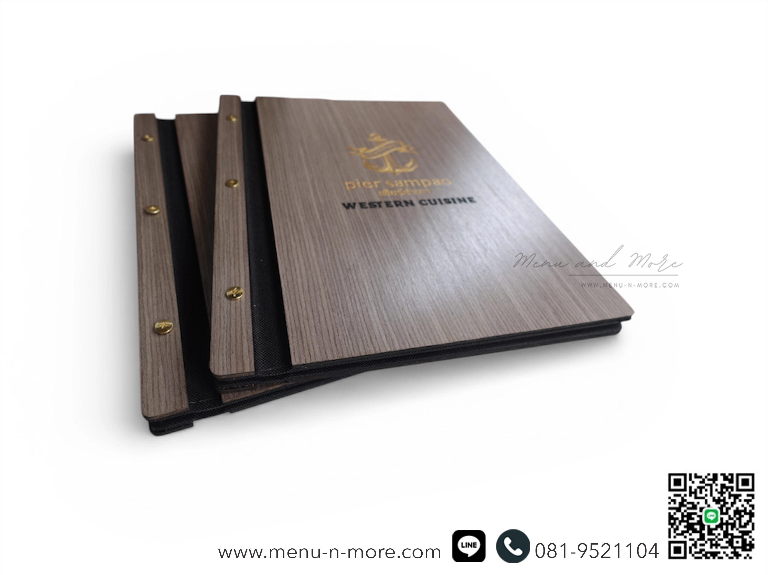 The menu cover is made of high-quality teak veneer wood, which is both strong and durable.