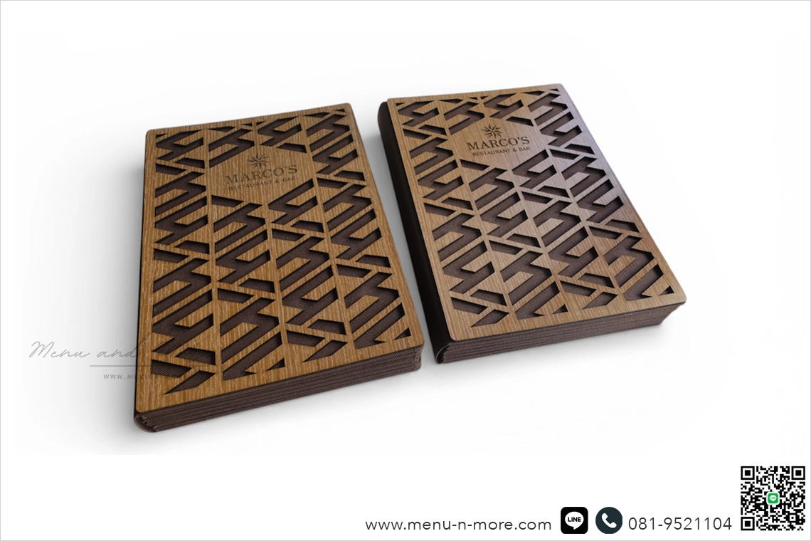 The menu cover is made of high-quality teak veneer wood, which is both strong and durable.