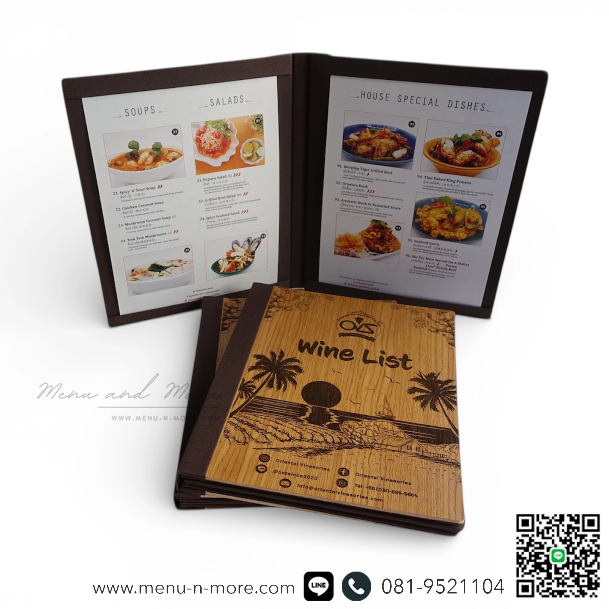 The menu cover is made of high-quality teak veneer wood, which is both strong and durable.