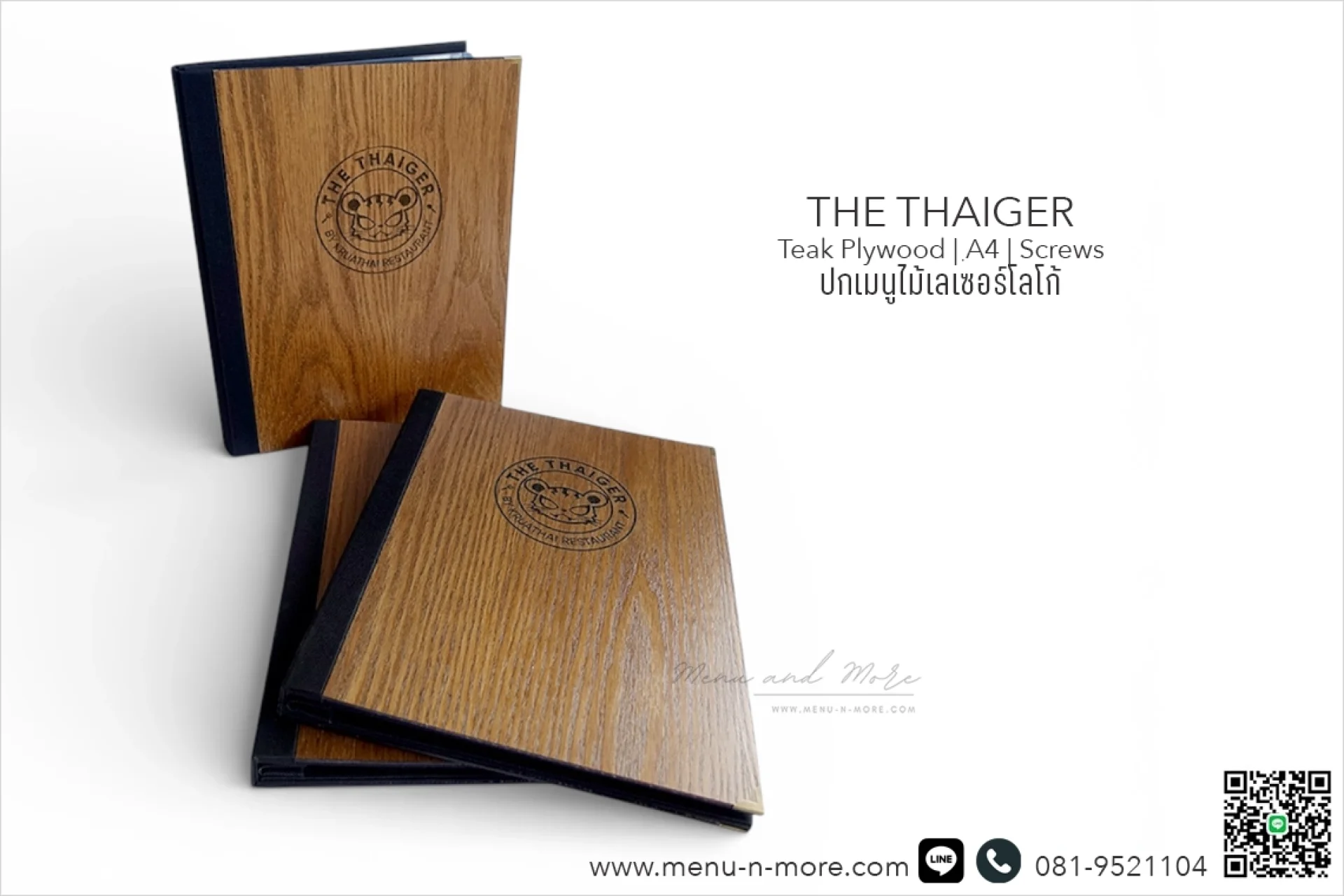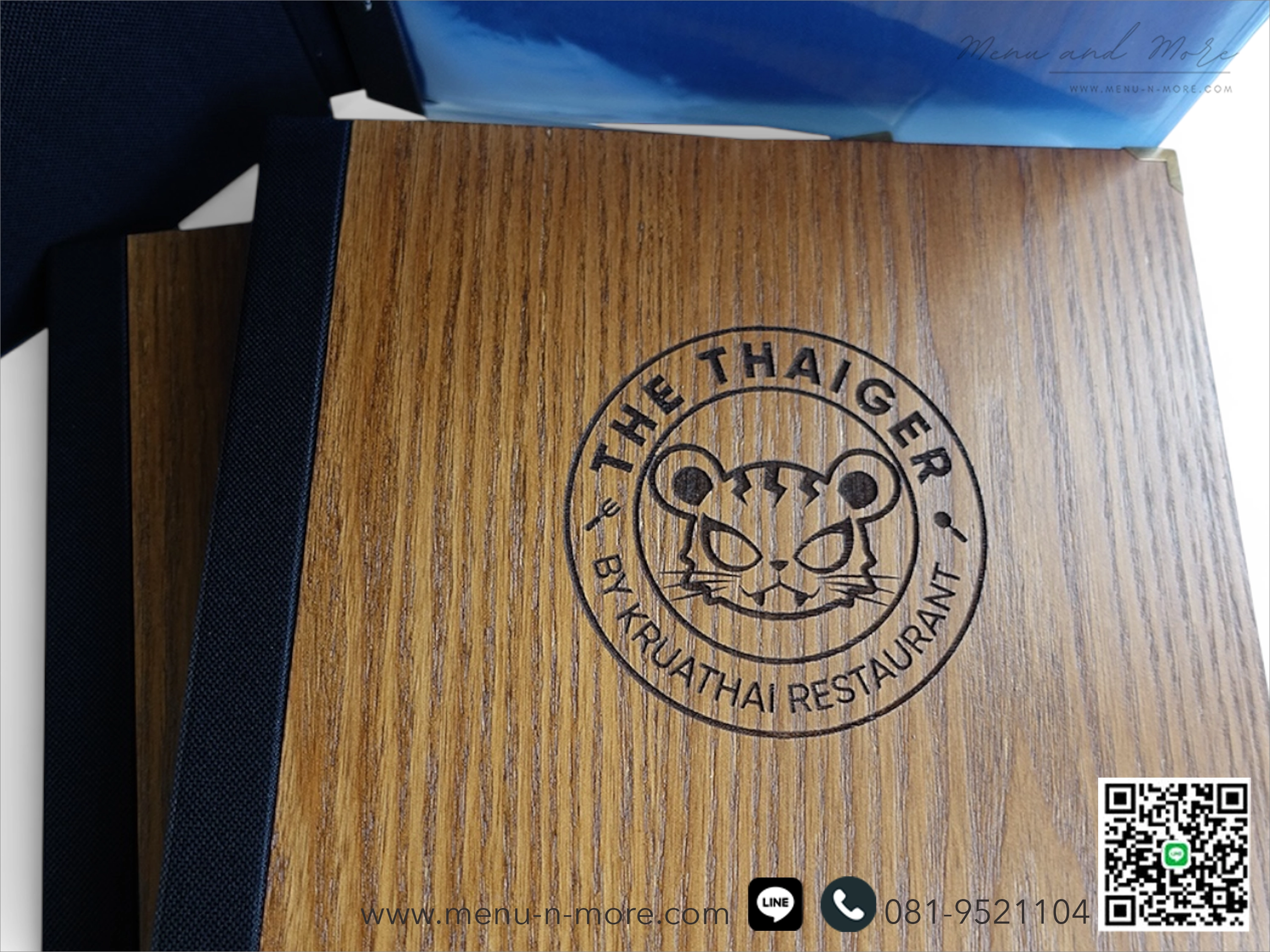 แฟ้มเมนูสั่งทำพิเศษจาก Menu and More สลักชื่อร้านด้วยเลเซอร์ มีไม้ให้เลือกถึง 10 แบบ