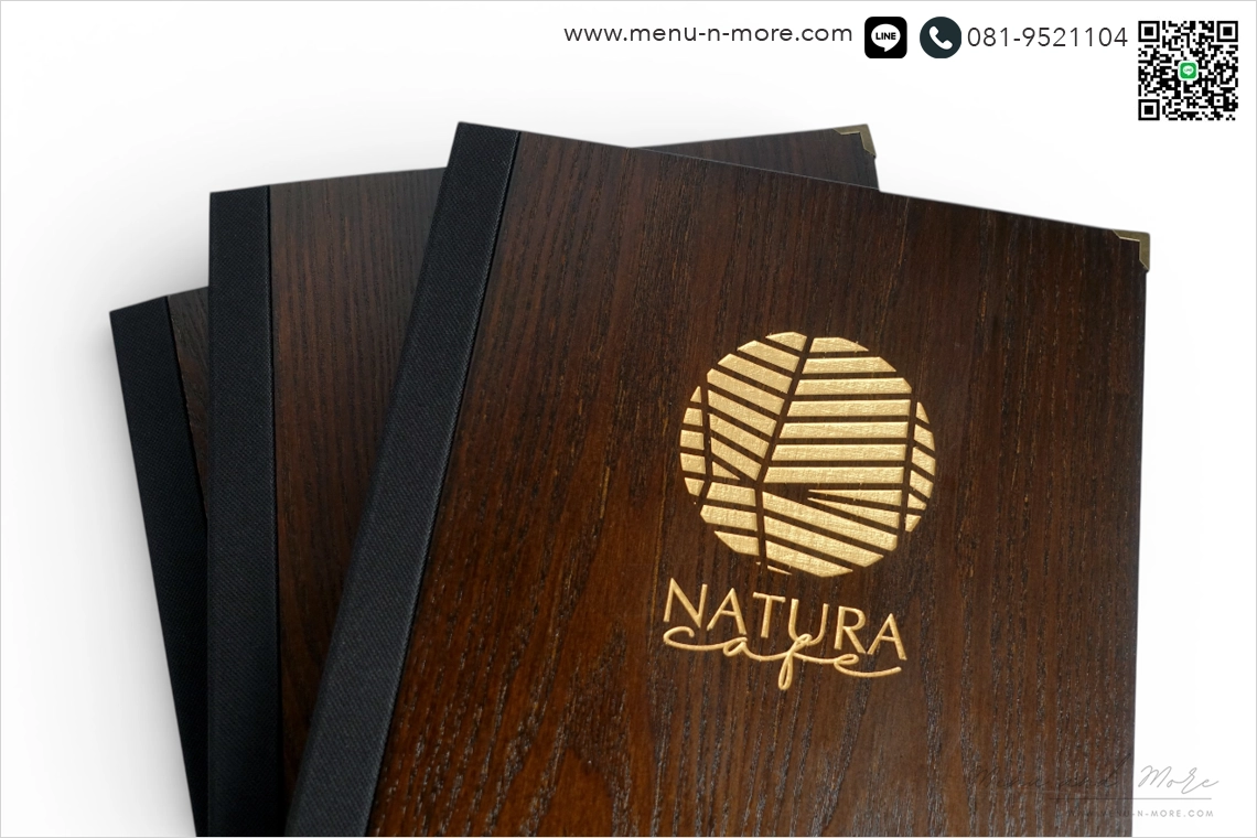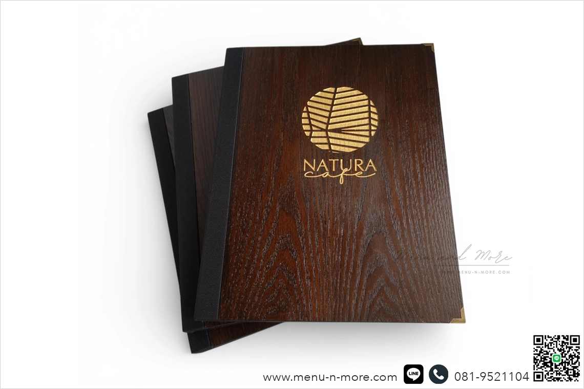 เลเซอร์ลงสีทองชื่อร้านอาหารบนแฟ้มเมนู เพิ่มความจดจำให้กับลูกค้าที่มาใช้บริการ