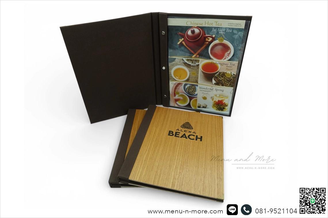 แฟ้มเมนูเลเซอร์ลงสีดำชื่อร้านอาหาร เพิ่มความจดจำ ให้กับลูกค้าที่มาใช้บริการ