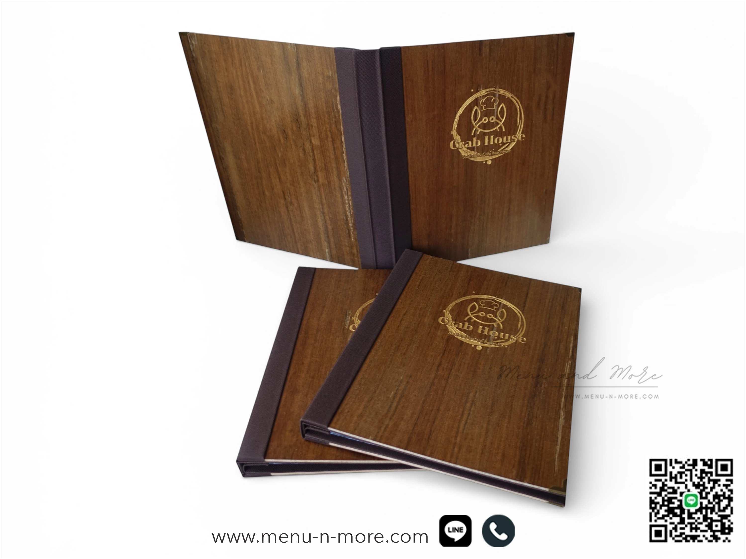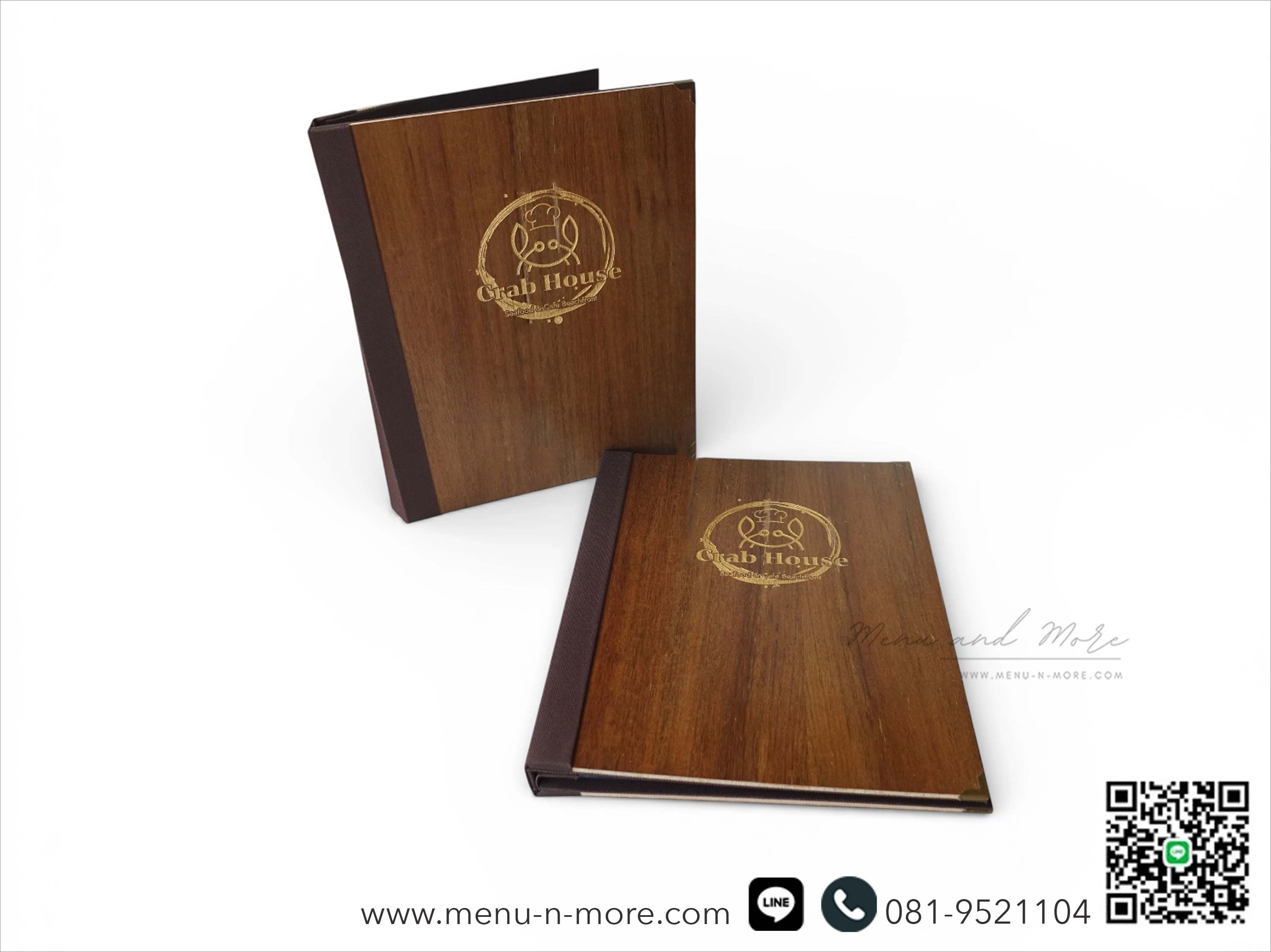 เลเซอร์ลงสีทองชื่อร้านอาหารบนแฟ้มเมนู เพิ่มความจดจำให้กับลูกค้าที่มาใช้บริการThe restaurant name was laser engraved in gold to increase recognition among customers who used the service.
