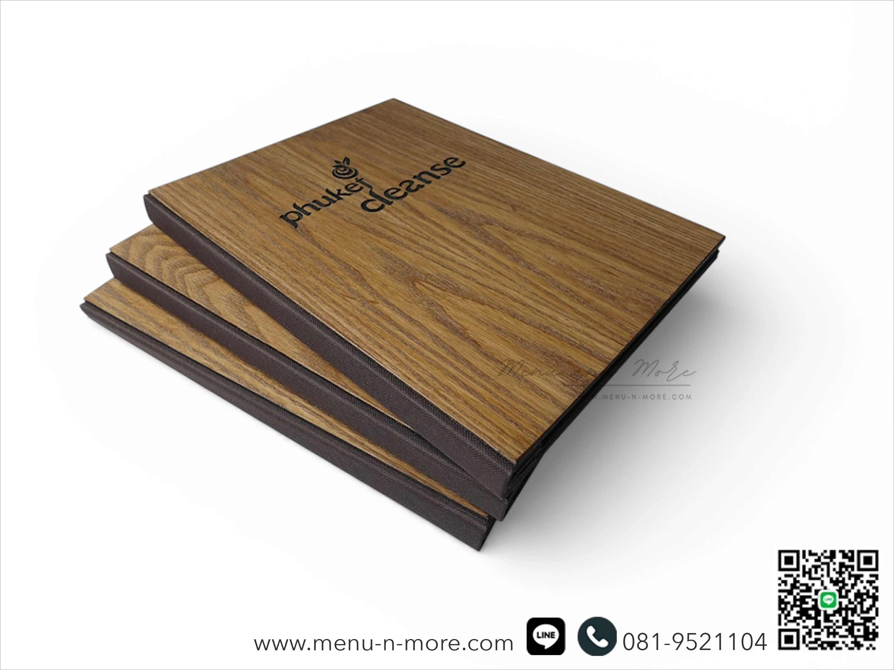 สลักแบรนด์ของคุณบนแฟ้มเมนูด้วยเทคโนโลยีเลเซอร์ของเรา ซึ่งใช้ได้กับไม้หลายชนิด