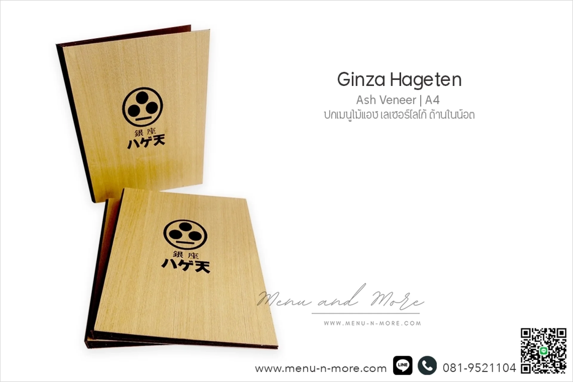 แฟ้มเมนูสั่งทำพิเศษจาก Menu and More สลักชื่อร้านด้วยเลเซอร์ มีไม้ให้เลือกถึง 10 แบบ