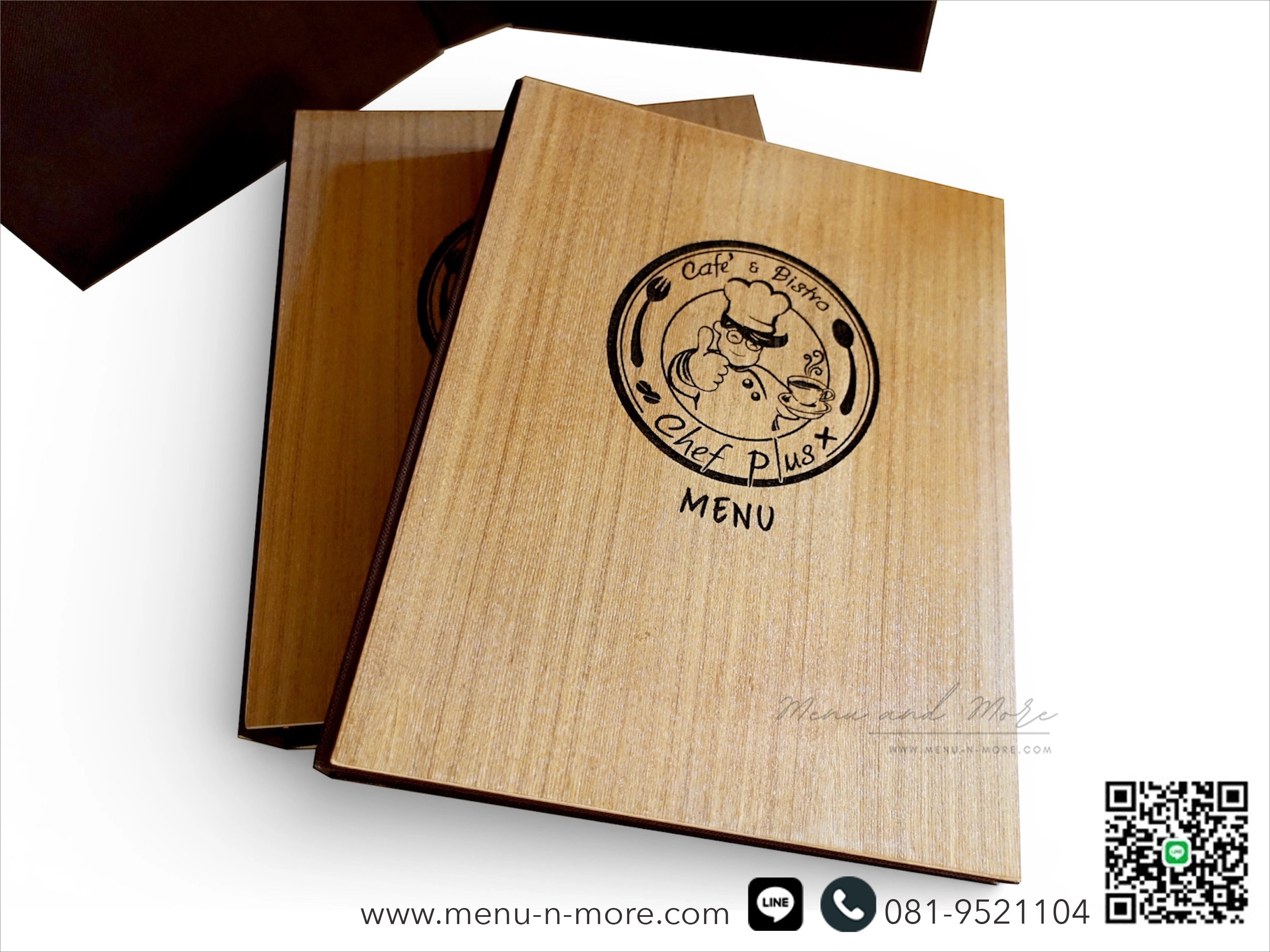 แฟ้มเมนูไม้มีให้เลือกทั้งแบบสีอ่อนและสีเข้ม หลากหลายขนาด