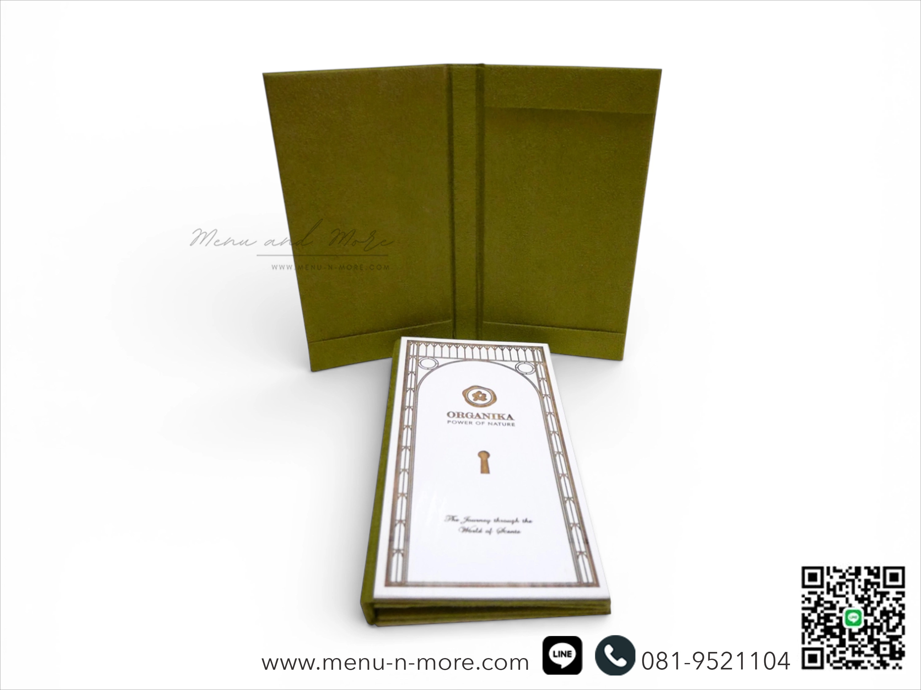 แฟ้มเมนูที่แข็งแรงทนทานทำจากไม้รีไซเคิล ให้ลุคทันสมัยที่ผสมผสานความดั้งเดิมและสไตล์เข้าด้วยกัน แต่ละแบบมีตัวเลือกสำหรับภายในที่หลากหลายเพื่อใส่เมนูที่พิมพ์ออกมา