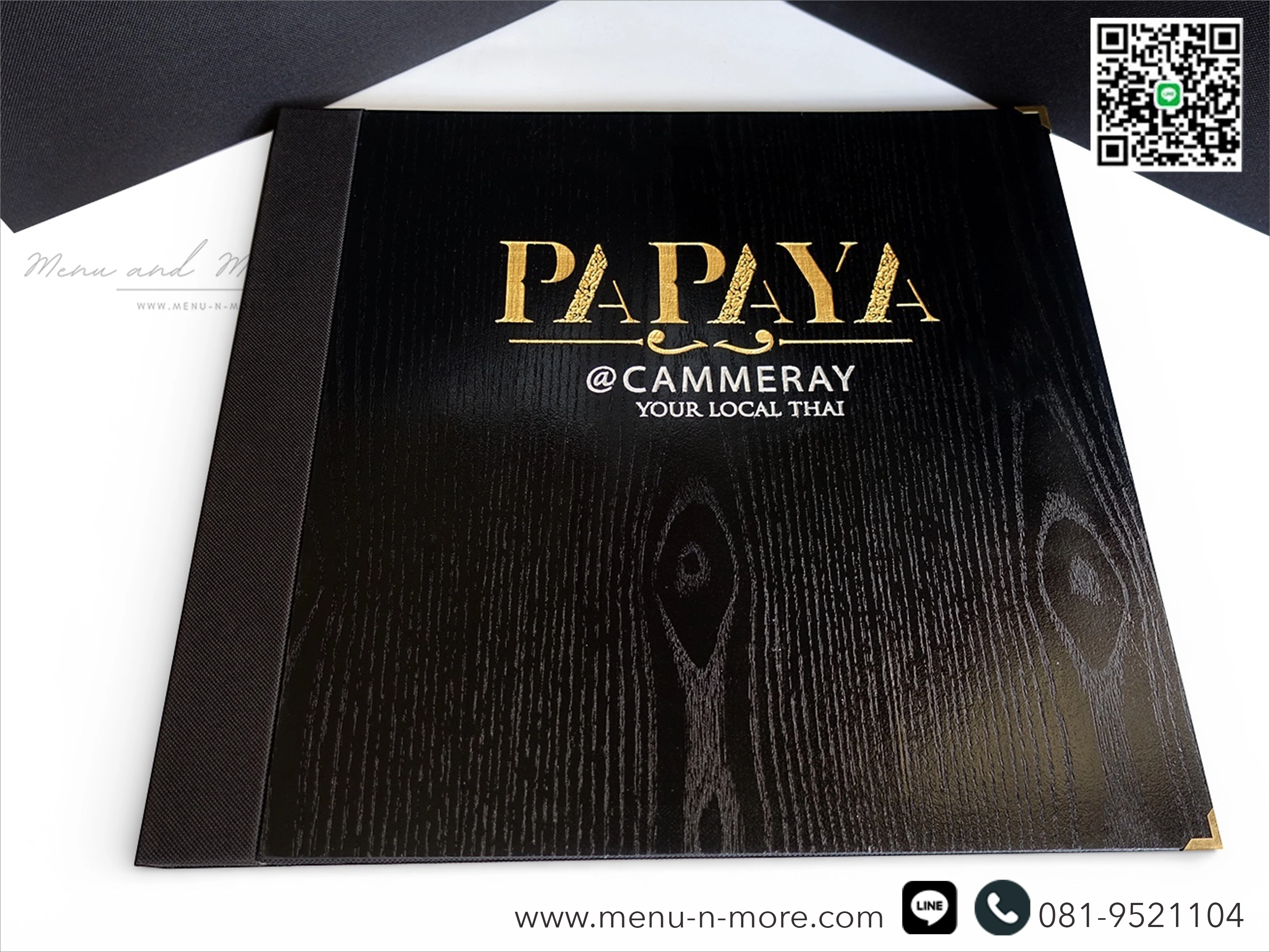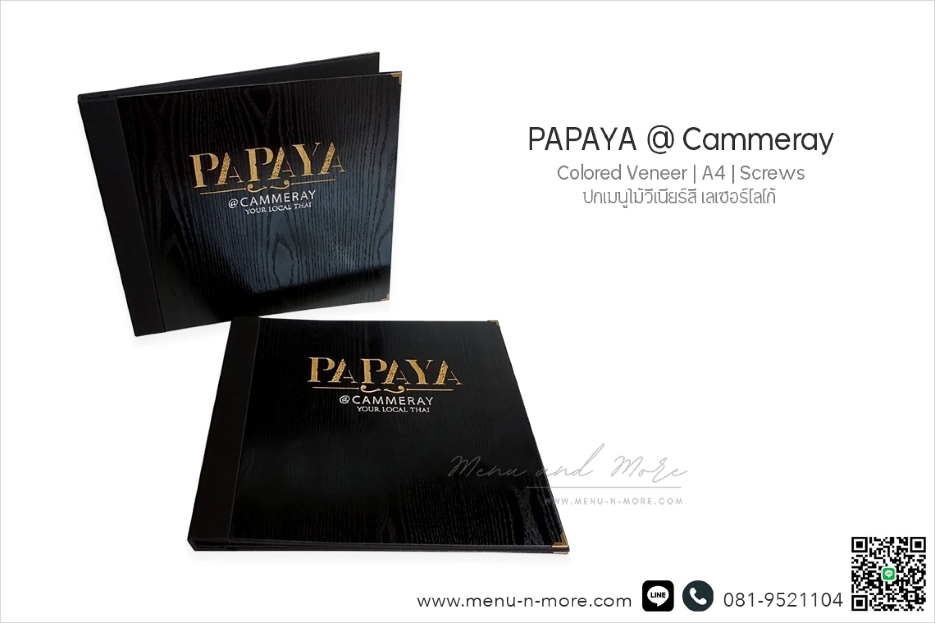 หนึ่งในแฟ้มเมนูยอดนิยมของเราตกแต่งด้วยไม้ธรรมชาติที่สวยงามสะดุดตา พร้อมสีสันสวยงามให้เลือกถึง 10 สี จึงเหมาะกับทุกร้าน ปกแต่ละเล่มทำด้วยมือ
