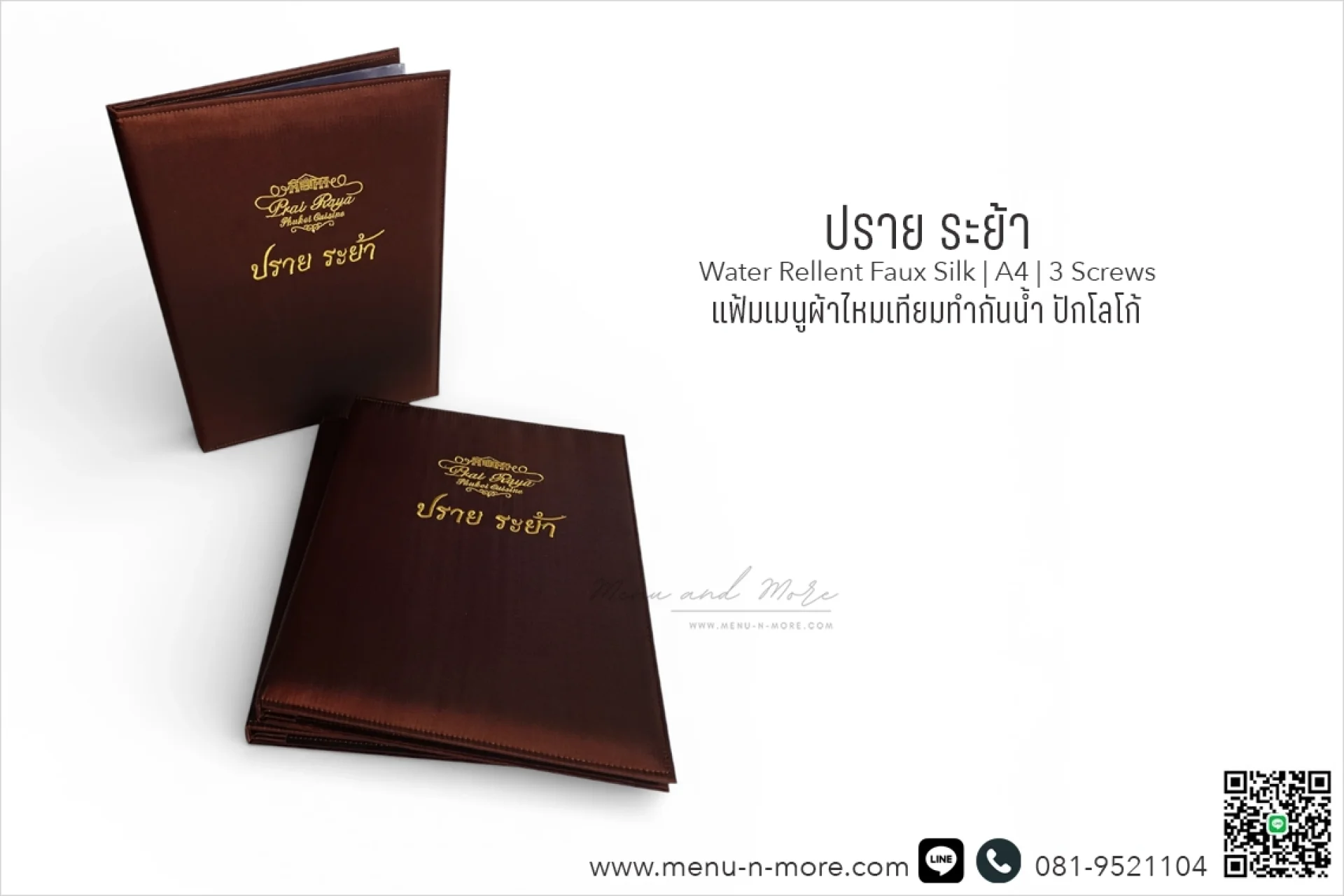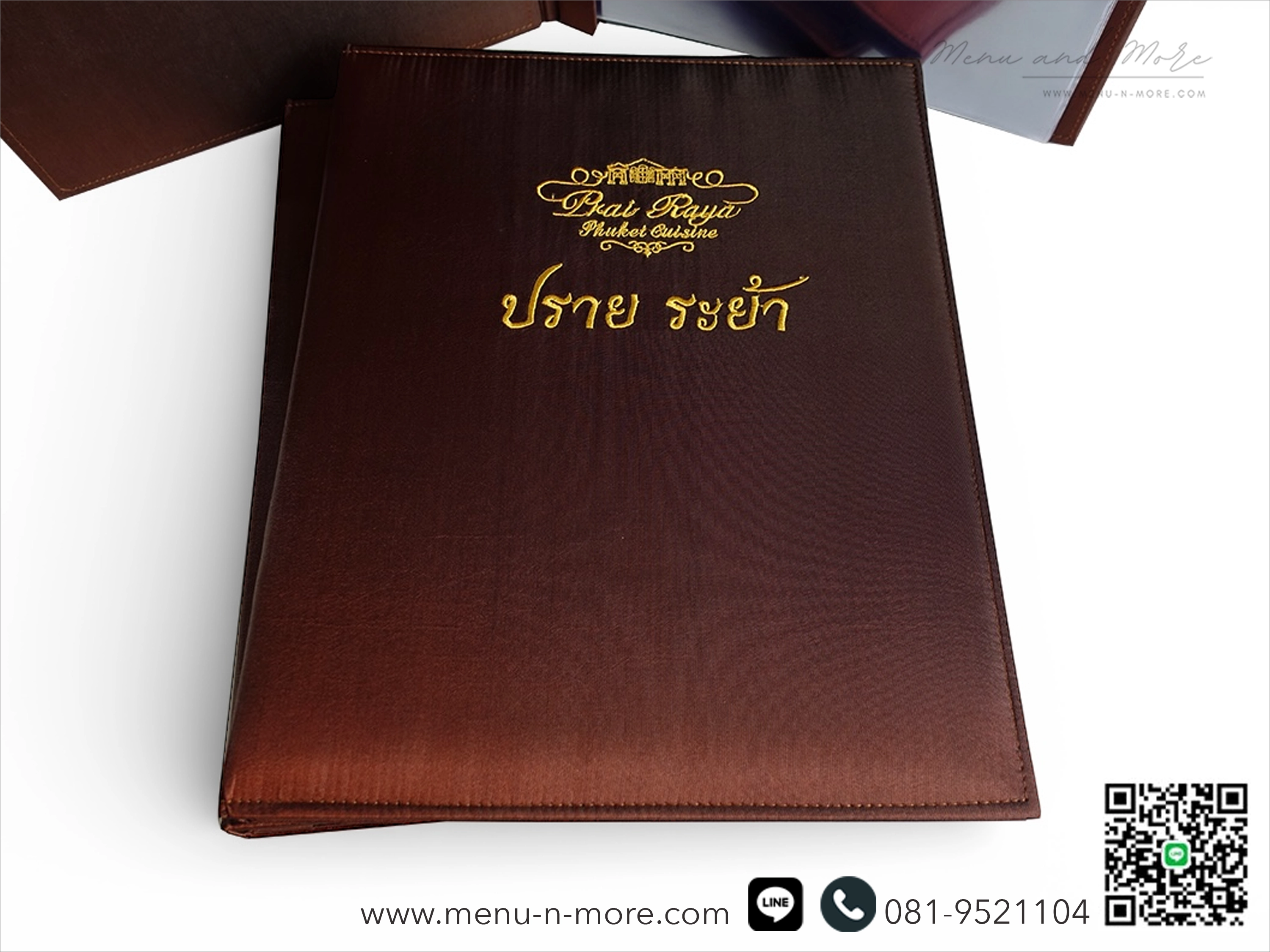 แฟ้มเมนูคอลเลกชันนี้ผสมผสานรูปลักษณ์เหนือกาลเวลาของผ้าไหมเทียมแบบดั้งเดิมเข้ากับเมนูร้านอาหารที่ทำความสะอาดง่ายและทนทาน