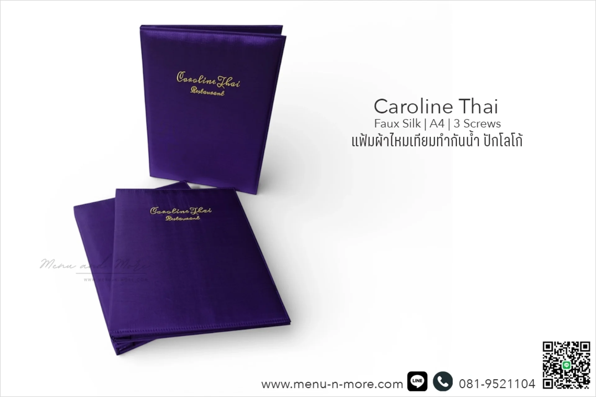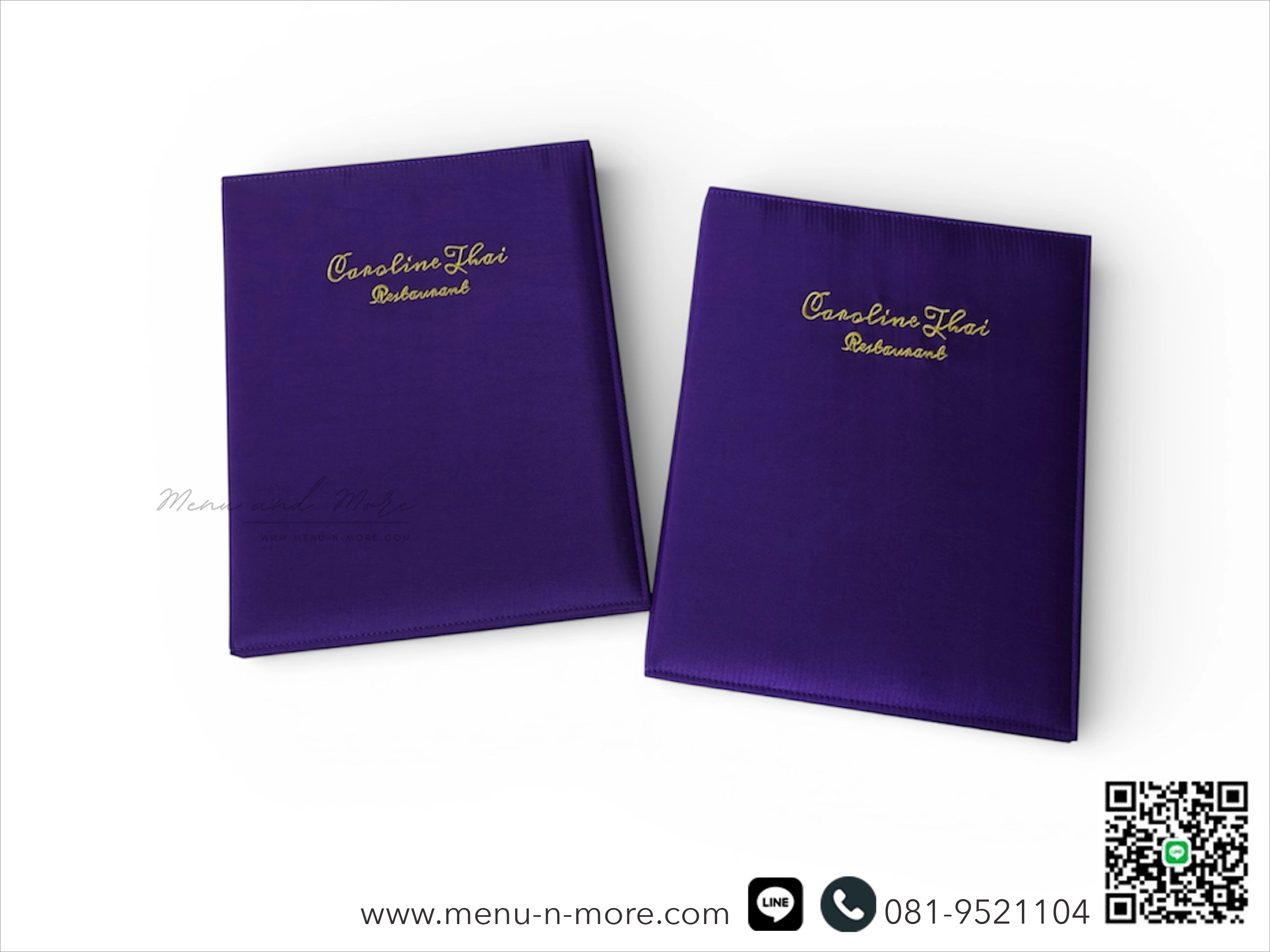 แฟ้มเมนูคอลเลกชันนี้ผสมผสานรูปลักษณ์เหนือกาลเวลาของผ้าไหมเทียมแบบดั้งเดิมเข้ากับเมนูร้านอาหารที่ทำความสะอาดง่ายและทนทาน